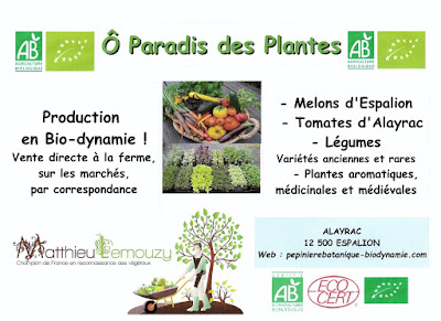 Matthieu Lemouzy, Espalionnais de 27 ans, botaniste et technicien conseil, ouvre le 25 mai prochain une pépinière botanique en biodynamie. C'est sur les terres agricoles familiales menées en agriculture biologique depuis 1997 qu'il cultive le "Melon bio d'Espalion" et la "Tomate bio d'Alayrac" à Alayrac dans l’Aveyron (12). Au delà de ces deux marques déposées, ce sont des modes de production et de culture respectueux de la plante et du sol. 100 pieds de variétés rares et anciennes de melon et 225 pieds de tomate sont les produits phares de la pépinière. 30 variétés de légumes rares et anciens quasi-introuvables sur les marchés vont être également y installer leurs racines. Les plantes aromatiques, médicinales et médiévales (en godet de 1 l et en vrac pour la cuisine) sont aussi de la partie. Soit 90 variétés choisies pour leurs saveurs, leurs formes, leurs couleurs et leur rareté qui vont, à terme, être cultivées. Légumes et plantes seront vendus à la ferme (deux demi-journées par semaine), sur les marchés (uniquement en saison à Espalion, St Geniez, Laissac et Rodez), dans les Amap, Ruches, Biocop du Sud-Ouest, mais également par correspondance et servis chez les restaurateurs. Les invendus de la saison ne seront pas jetés mais transformés en délicieuses confitures, liqueurs de melon, sauce tomate… Aucun désherbant, engrais (même veux autorisés en culture AB), pesticides, molécules de synthèse, ne sont utilisés. Des pulvérisations à base de plantes issues de l'exploitation et de roches naturelles sont réalisées pour éviter les maladies. Le compost remplace le fumier ou terreau, toutes les cultures sont paillées par du BRF. Déjà plus de 23 contributeurs ont participé au projet de Matthieu, plus de 53% financé sur la plate-forme Miimosa.