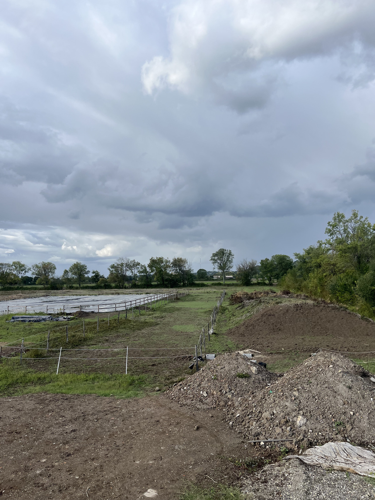 - La terre décaissée entassée à l'endroit prévu pour l'abri du paddock d'intégration,