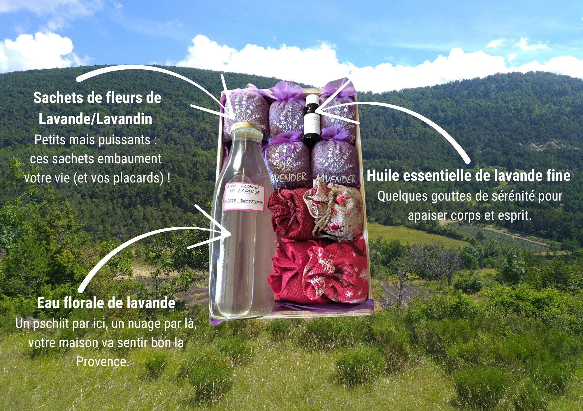 Laissez-vous transporter par les parfums envoûtants et les saveurs authentiques de ce coffret unique, composé de : - 1L d’eau florale de lavande : idéale pour parfumer votre linge, rafraîchir votre maison (usage domestique uniquement) - 1 flacon de 10 ml d’huile essentielle de lavande fine, reconnue pour ses vertus apaisantes et relaxantes. - 8/10 sachets de fleurs de lavande/lavandin, pour embaumer vos tiroirs, créer des infusions ou simplement profiter de leur douceur. Disponibilité : Sous 15 jours après la fin de la collecte. Plongez dans un univers de bien-être et de saveurs, directement inspiré de la nature provençale. 🌿🍯💜