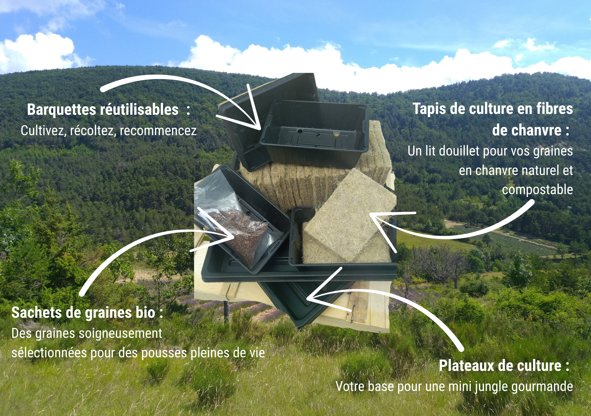 Transformez votre cuisine en un véritable jardin miniature grâce à ce kit complet, idéal pour découvrir le plaisir de faire pousser des micropousses fraîches, savoureuses et nutritives. Le kit contient tout ce dont vous avez besoin : - 2 plateaux de culture (25 x 25 cm) : Un plateau de rétention d’eau, Un plateau de couverture pour optimiser la germination. - 8 barquettes réutilisables en plastique recyclé, pour des cultures pratiques et durables. - 24 tapis de culture en fibres de chanvre compostables, parfaitement adaptés pour une croissance optimale. - 2 sachets de graines bio spéciales micropousses : Radis Mix : 4 variétés de radis aux couleurs et saveurs intenses, Mix Punch : un mélange vibrant de roquette, cresson, mizuna rouge et verte, et radis. - Un guide explicatif au format PDF, détaillant toutes les étapes pour réussir vos semis, de la germination à la récolte, avec des astuces pour maximiser votre production. Découvrez le bonheur de cultiver et de déguster vos propres micropousses, directement chez vous ! 🌱✨ Disponibilité : à partir de 2026