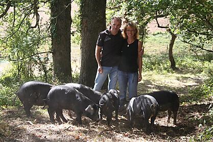 Nous sommes installés en agriculture biologique dans le Gers. Nous y élevons des cochons en plein air et avons crée une safranière.