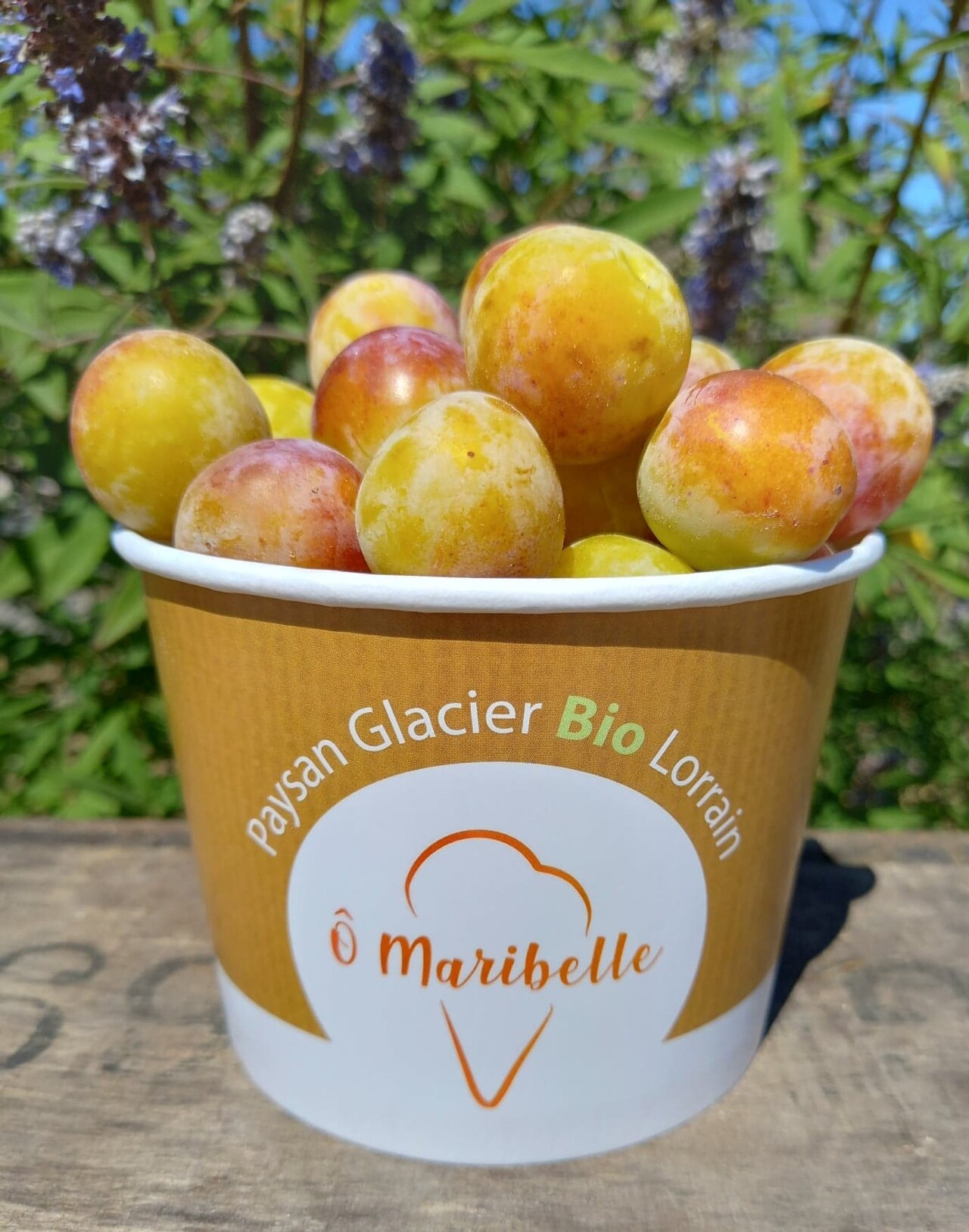 Ô Maribelle est une petite entreprise agricole située en Lorraine. Nous produisons des fruits, 100% en Agriculture Biologique, notamment les Mirabelles IGP de Lorraine, qui font notre fierté, sur une surface de 40ha.  Ces fruits sont vendus en direct, via différents réseaux de producteurs et à notre coopérative régionale. Une partie des fruits cultivés est transformée en produits d'épicerie (nectars, confitures), une autre en sorbets et crèmes glacées. Ainsi, une partie de nos sorbets est réalisée avec les fruits de notre exploitation et le lait de nos crèmes glacées provient d'une ferme voisine.