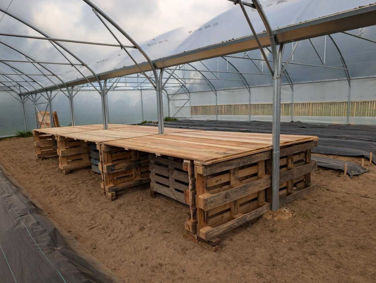 En janvier 2025, les tables de culture sont construites avec de la récup...