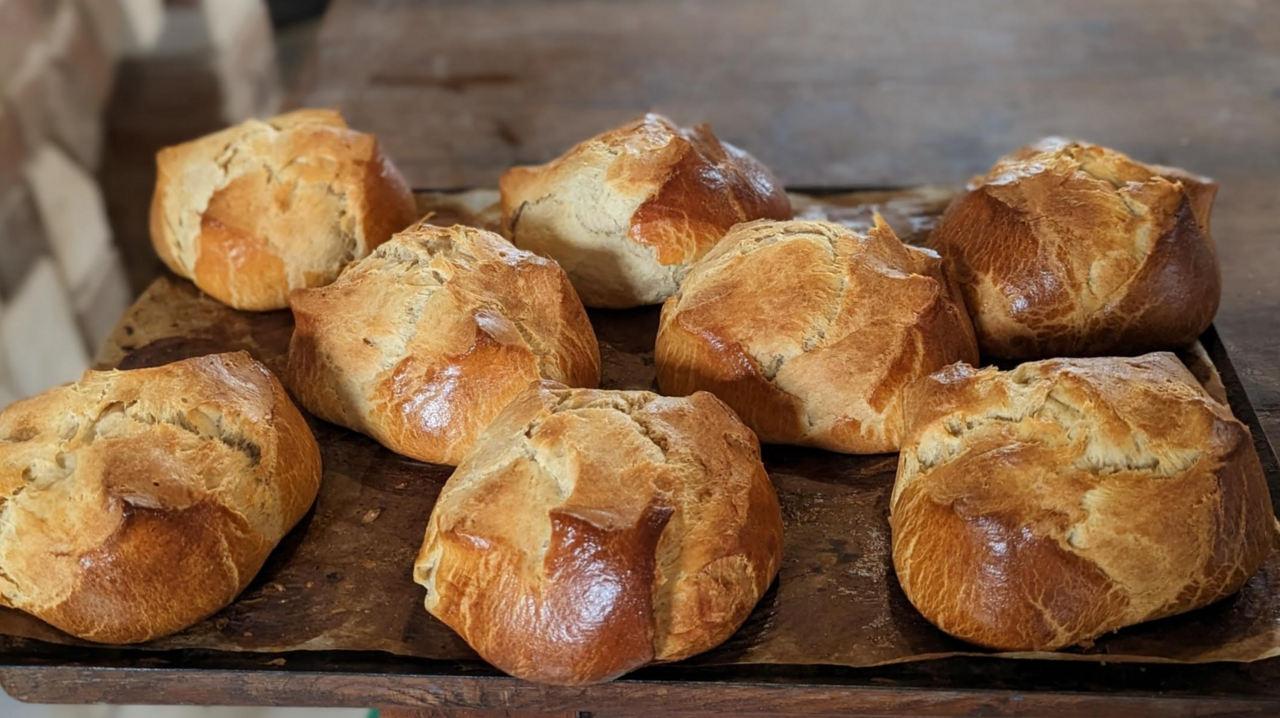 3 pains (au choix) + 1 brioche de 400 g (au choix) + une invitation à l'inauguration du fournil + votre nom gravé sur le mur du fournil dédié aux donateurs