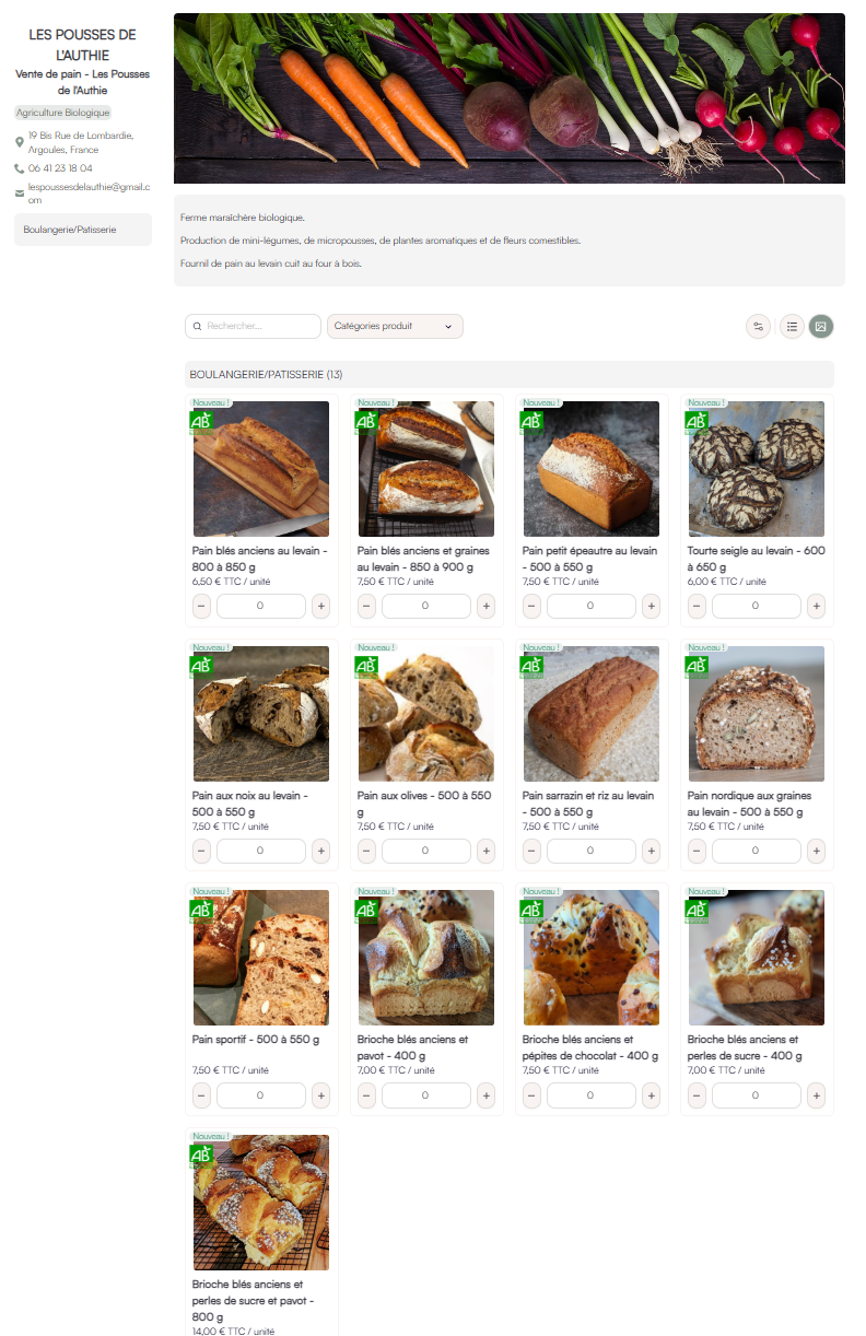 - 2 jours de production-vente à la ferme en pré-commande via une application pour limiter le gaspillage (voir ci-dessous)