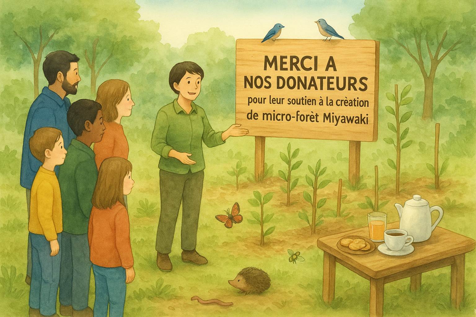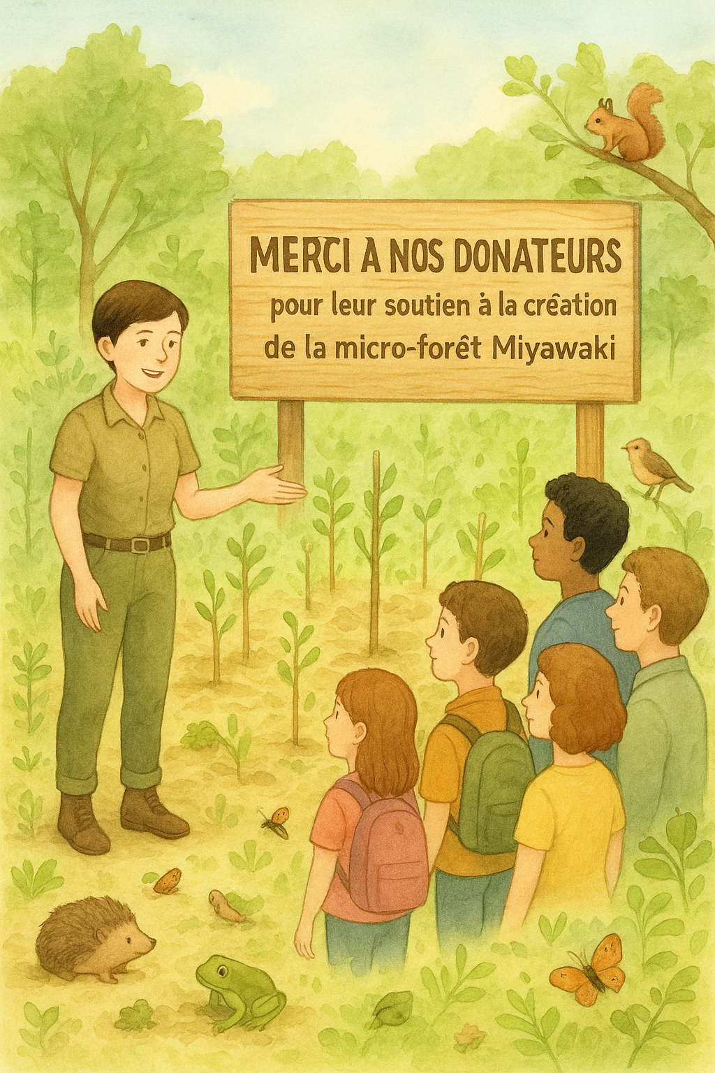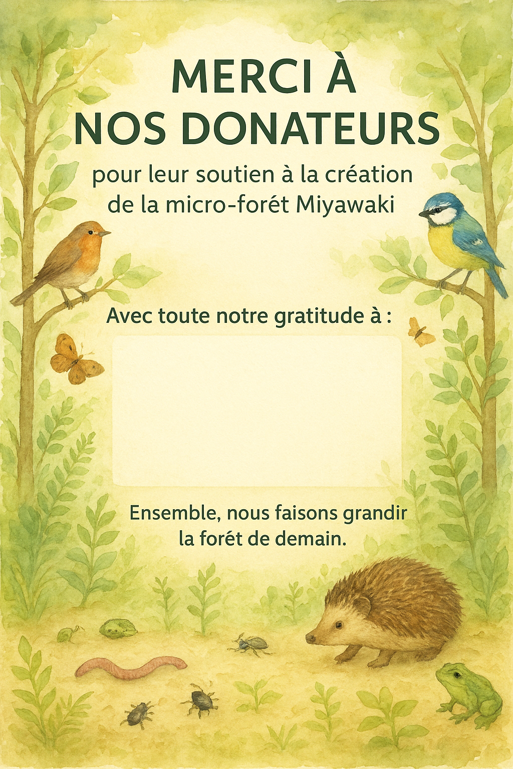 Hommage aux donateurs : un panneau de remerciements avec votre nom (sauf si vous ne le souhaitez pas), au pied de la micro-forêt