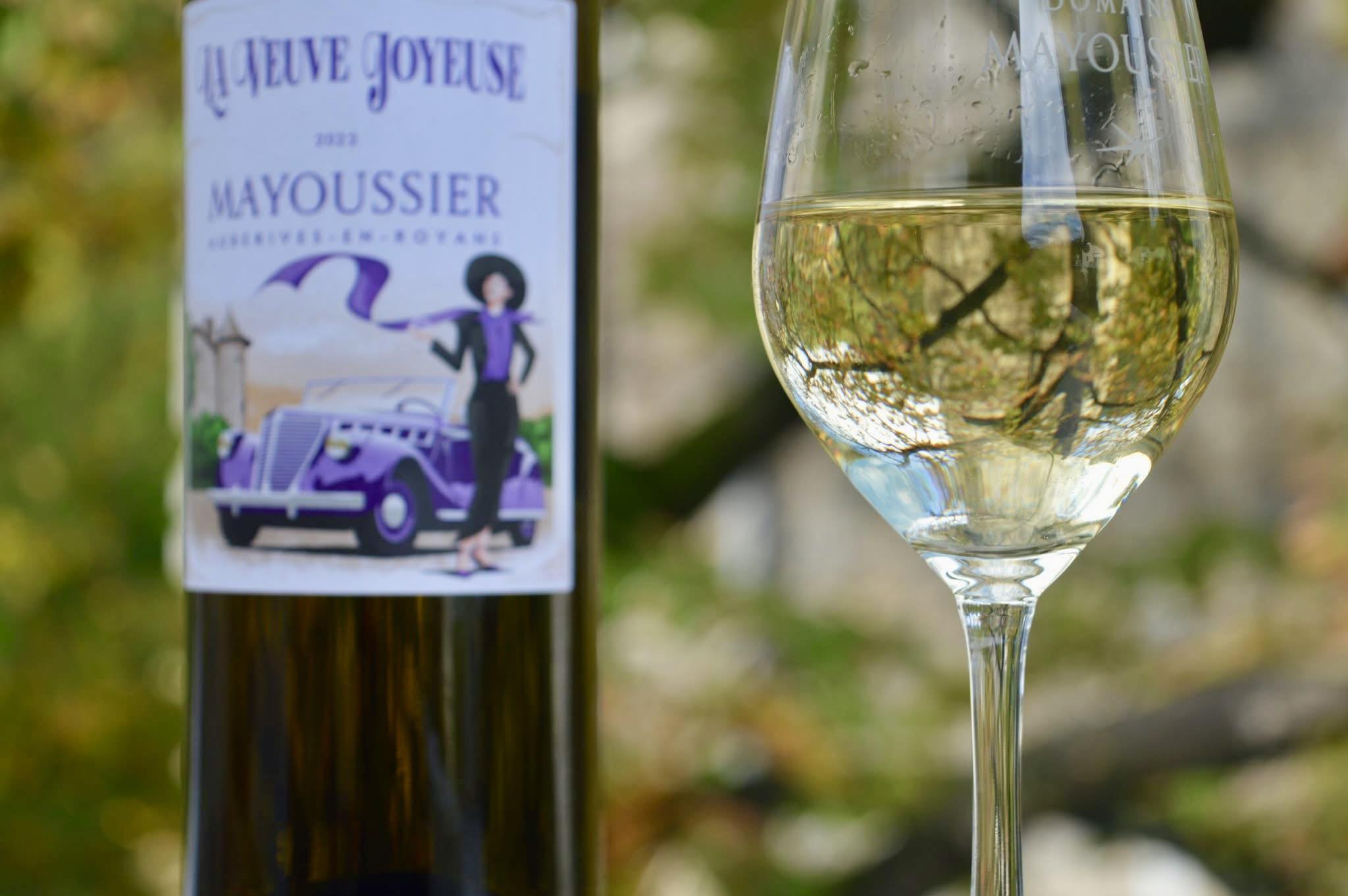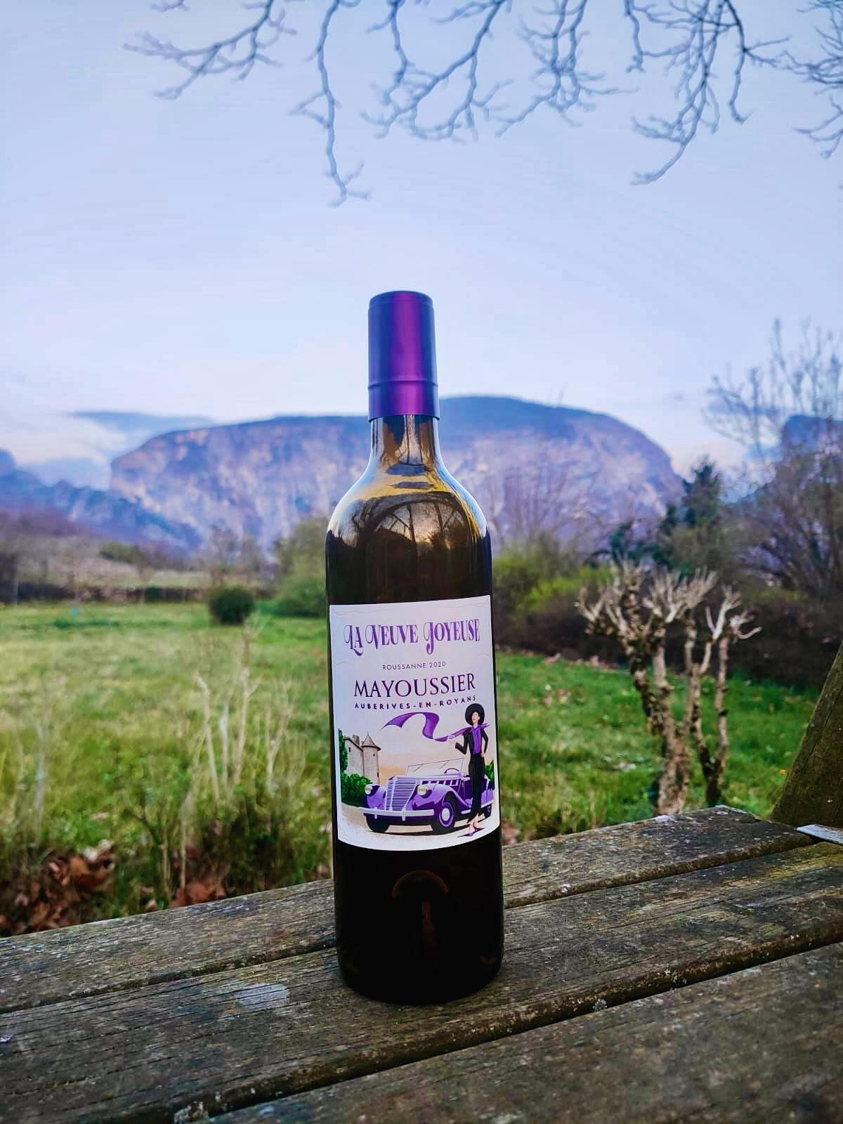 Une bouteille de Veuve Joyeuse, notre vin blanc à venir chercher au Domaine
