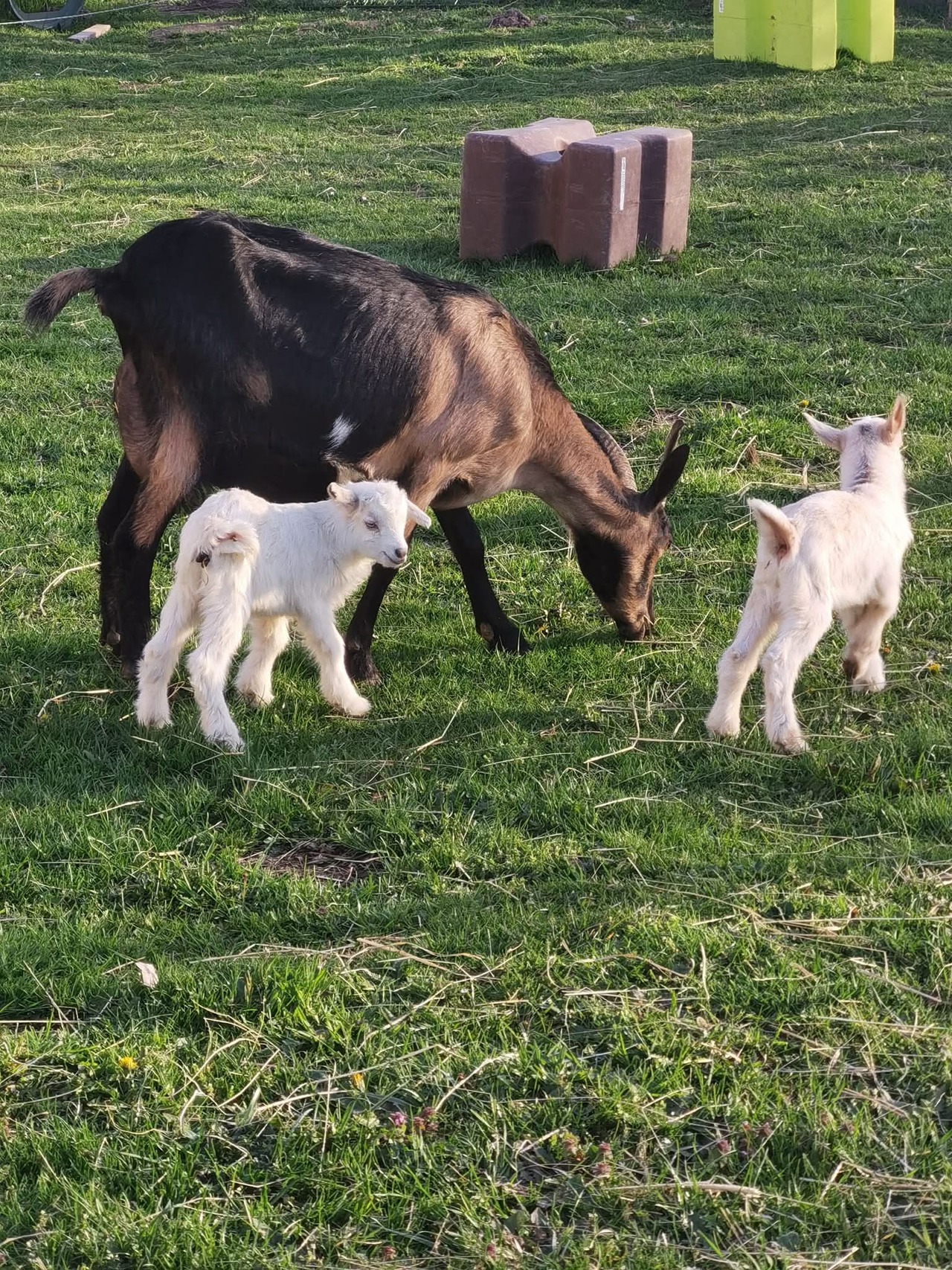Un coup de cœur instantané, pour la jolie rebelle qui était gestante de 4 mois. Je suis donc repartie avec elle et 1 mois après deux magnifiques chevreaux blancs sont nés.