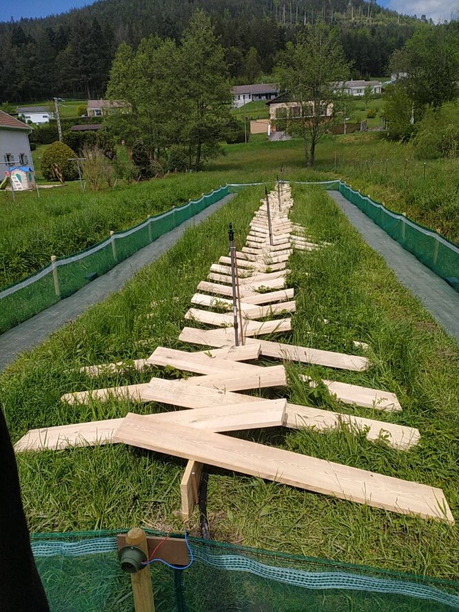 Nous avons installé des planches  qui serviront de mangeoires , elles  serviront également de protection pour les escargots.