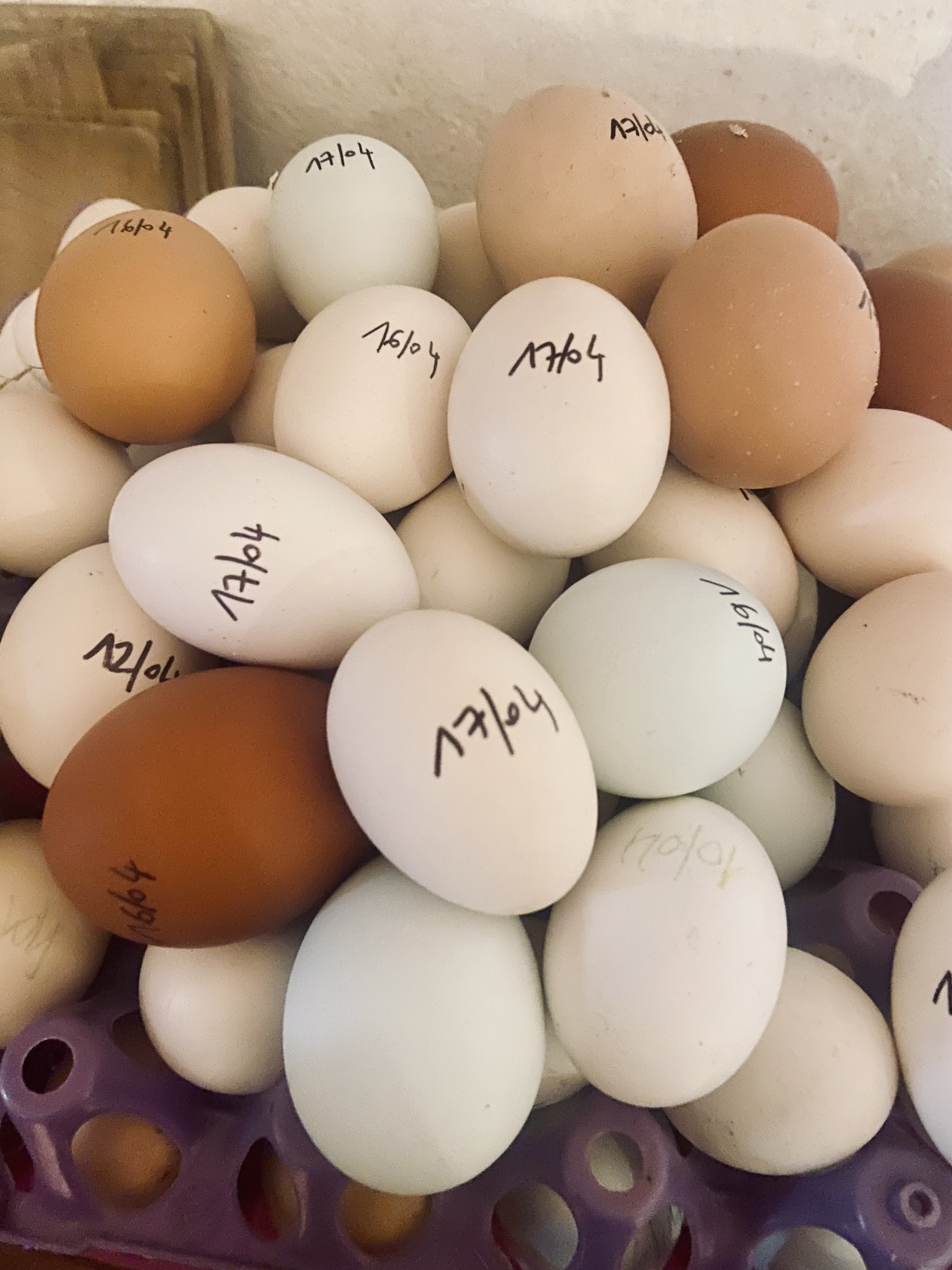Il s’agit d’un élevage de poules pondeuses bio, composé de races anciennes choisies pour leur rusticité… et pour la palette étonnante de leurs œufs : crème, brun profond, bleu, vert tendre. Une sorte de nuancier vivant.