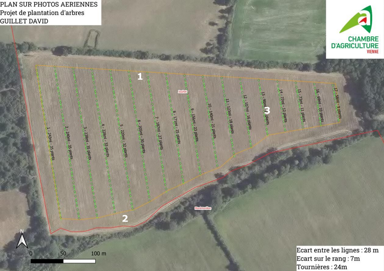 Le projet a été pensé pour créer du pâturage entre les arbres, permettant ainsi aux bovins, comme aux équins de profiter de l'herbe qui pousse à la belle saison.