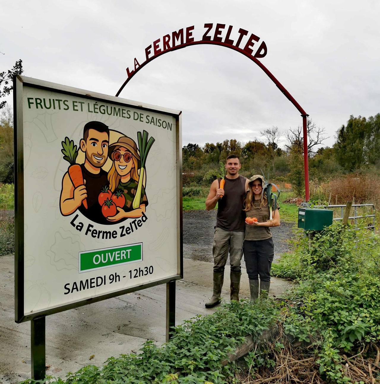 Nous sommes Zélie et Teddy, un couple de jeunes maraîchers installés sous le nom de La Ferme Zelted, à La Motte-au-Bois (Nord).