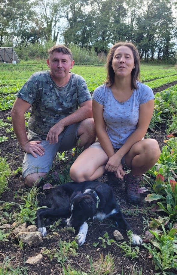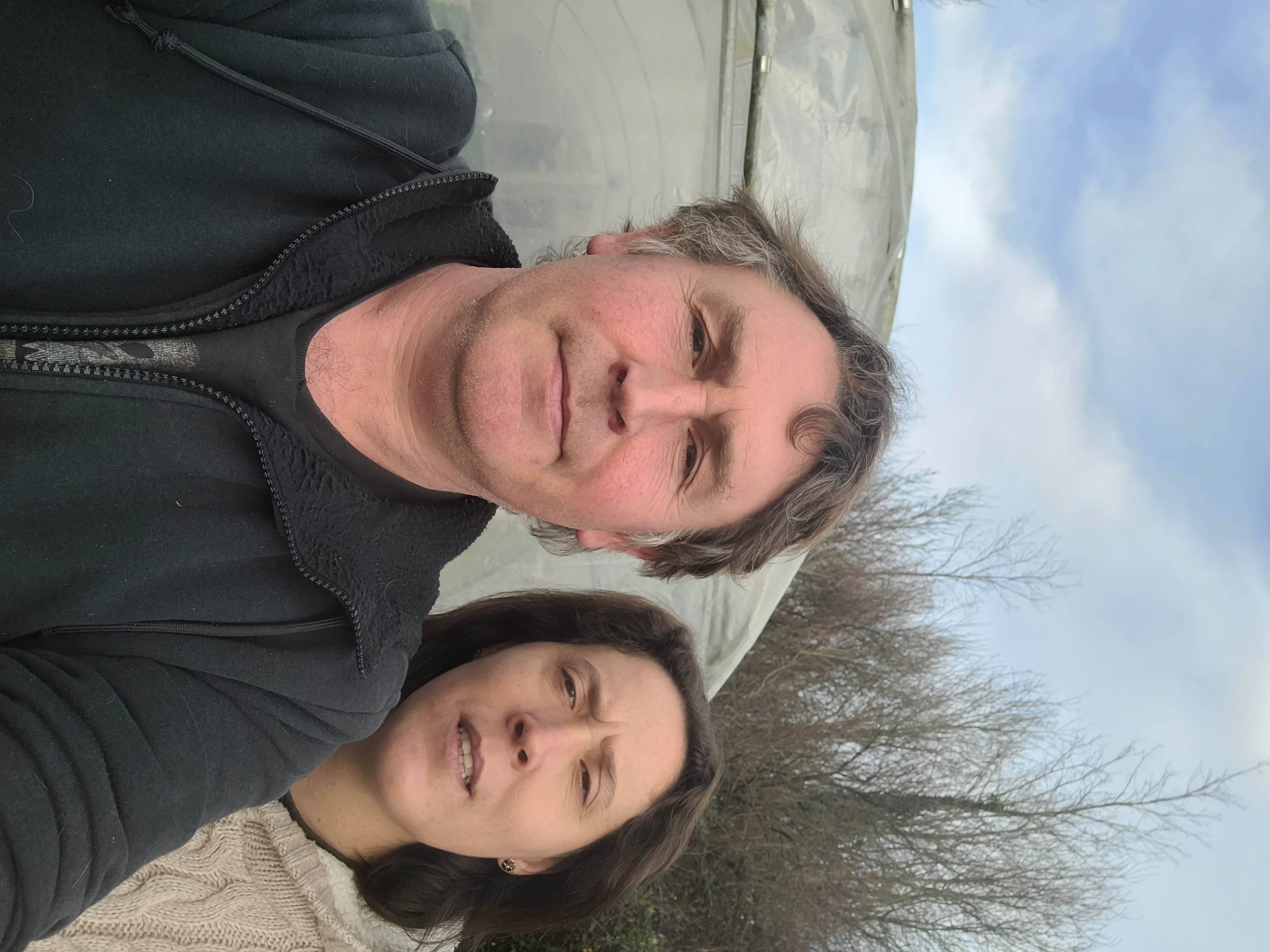 Bonjour, nous sommes Damien Rouchier, anciennement jardinier paysagiste et Christelle Popek, maraîchère depuis l'âge de 16 ans, ayant eu l'occasion de reprendre des bancs sur des marchés on a décidé de créer une exploitation maraîchère dans le respect de la faune et la flore et de notre environnement sur la commune de Chambon.