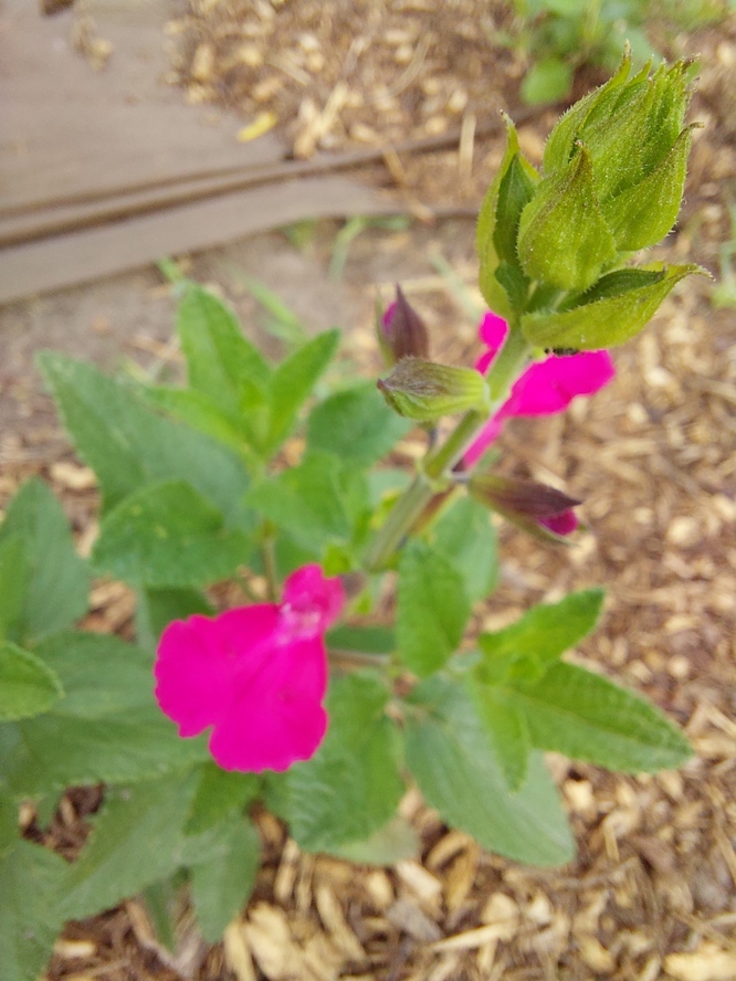 J'y cultive les plantes méditerranéennes (romarin, thyms, l'Immortelle Corse, lavande...), les plantes aromatiques (sarriette des montagnes, mélisse citronnée, des verveines, des agastaches, de la tagète, de nombreuses variétés de menthes (parmi elles ma chouchoute la menthe bergamote), sauge officinale...) des petits fruits (framboisiers, cassissiers, myrtilliers); une roseraie ancienne de Damas, Gallica et Moussus; sans oublier les fleurs comestibles (zinnias, violettes, oxalis, capucine, différentes variétés de sauges, échinacée, monarde...).