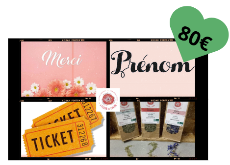 un grand Merci + votre prénom sur un support dédié qui sera affiché à la ferme + une invitation offerte pour 2 personnes pour Paille et Ripaille du 30 août au 1er Septembre 2024 à Langon ou une visite dégustation offerte pour 2 personnes à partir du printemps 2025 + 1 tisane de votre choix offerte parmi le stock disponible
