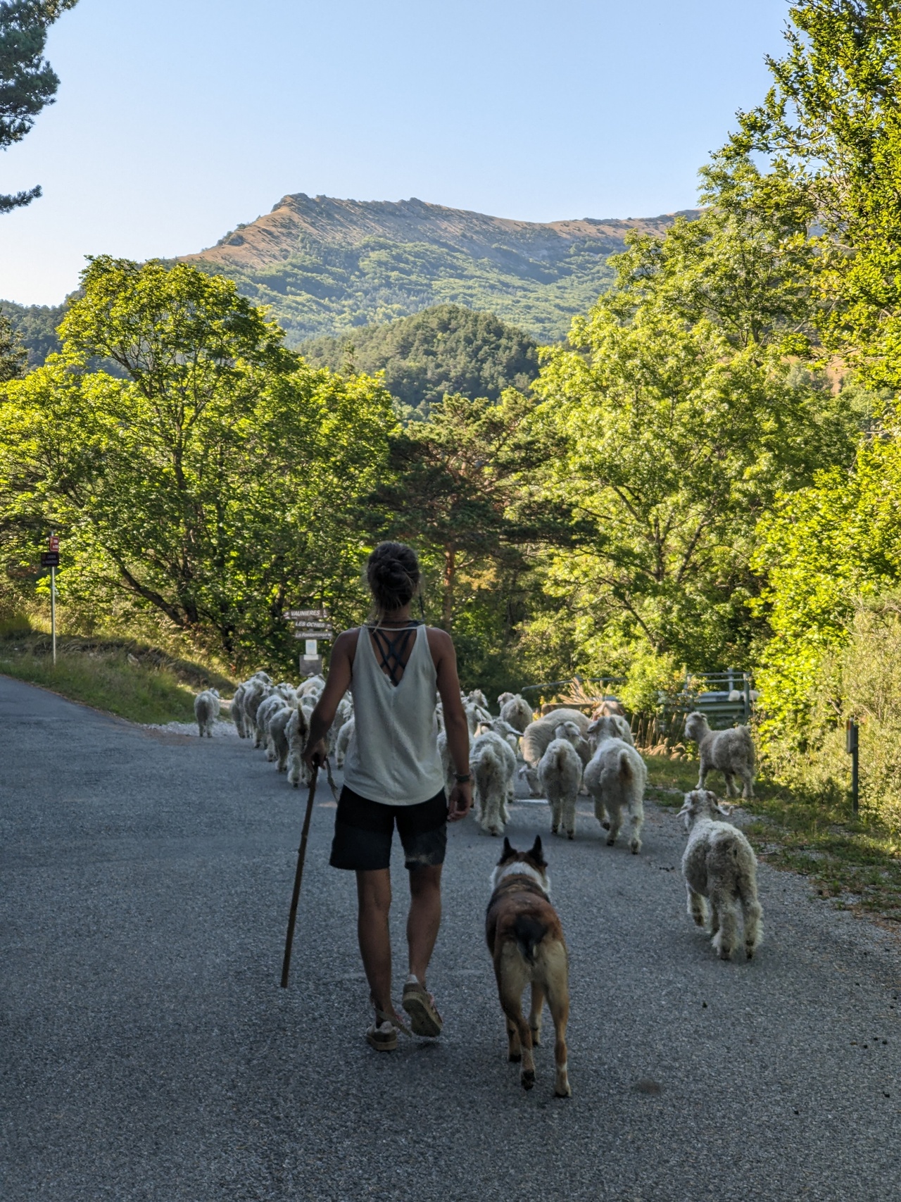 En parallèle de cette formation agricole, j’ai développé mon expérience sur le terrain dans différentes fermes ovines et caprines avec transformation dans le Béarn, en Savoie, dans le Var et en tant que bergère en alpage dans les Hautes-Alpes en brebis viande.