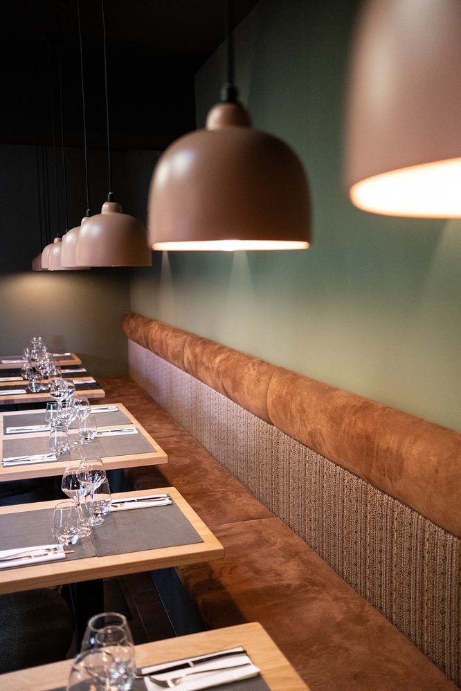 Depuis le début de notre aventure, nous avons essayé de mettre en avant le savoir-faire des différents artisans avec qui nous collaborons. Nos carafes d'eau sont des bouteilles de vins que nous avons transformées; les couteaux de table sont fabriqués par la maison Chambriard à Thiers; la vaisselle a été selectionné chez Jars; le chef travaille main dans la main avec ses différents producteurs et va sur le marché de Craponne deux fois par semaine pour assurer une fraîcheur optimale; les tables ont été fabriqués par le père de Matthew; etc...
