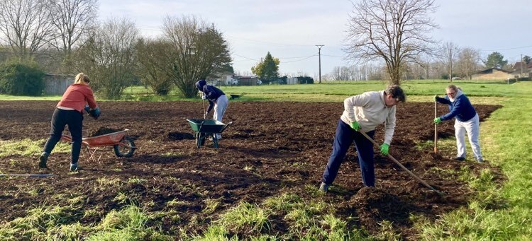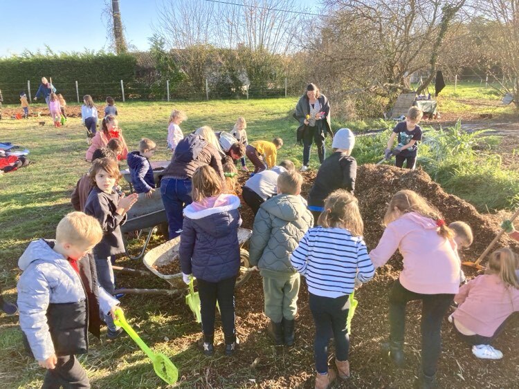 On y mène un atelier pédagogique à l’année avec l’école de Bayon-sur-Gironde. Les enfants scolarisés à l'école maternelle et primaire de Bayon suivent un cours de jardinage tout au long des saisons, ils préparent le sol, désherbent, font eux-mêmes leurs semis et les suivent jusqu'au repiquage. Puis vient le temps de la récolte. Pour faire simple, ils reproduisent en petite surface et à leur échelle, ce que je mets en place en grand. C'est aussi un moment de joie et de partage, de découverte du jardin autour des plantations pérennes et de tout le vivant qui les entoure, un vrai rdv hebdomadaire pour eux comme pour moi attendu avec impatience et enthousiasme.