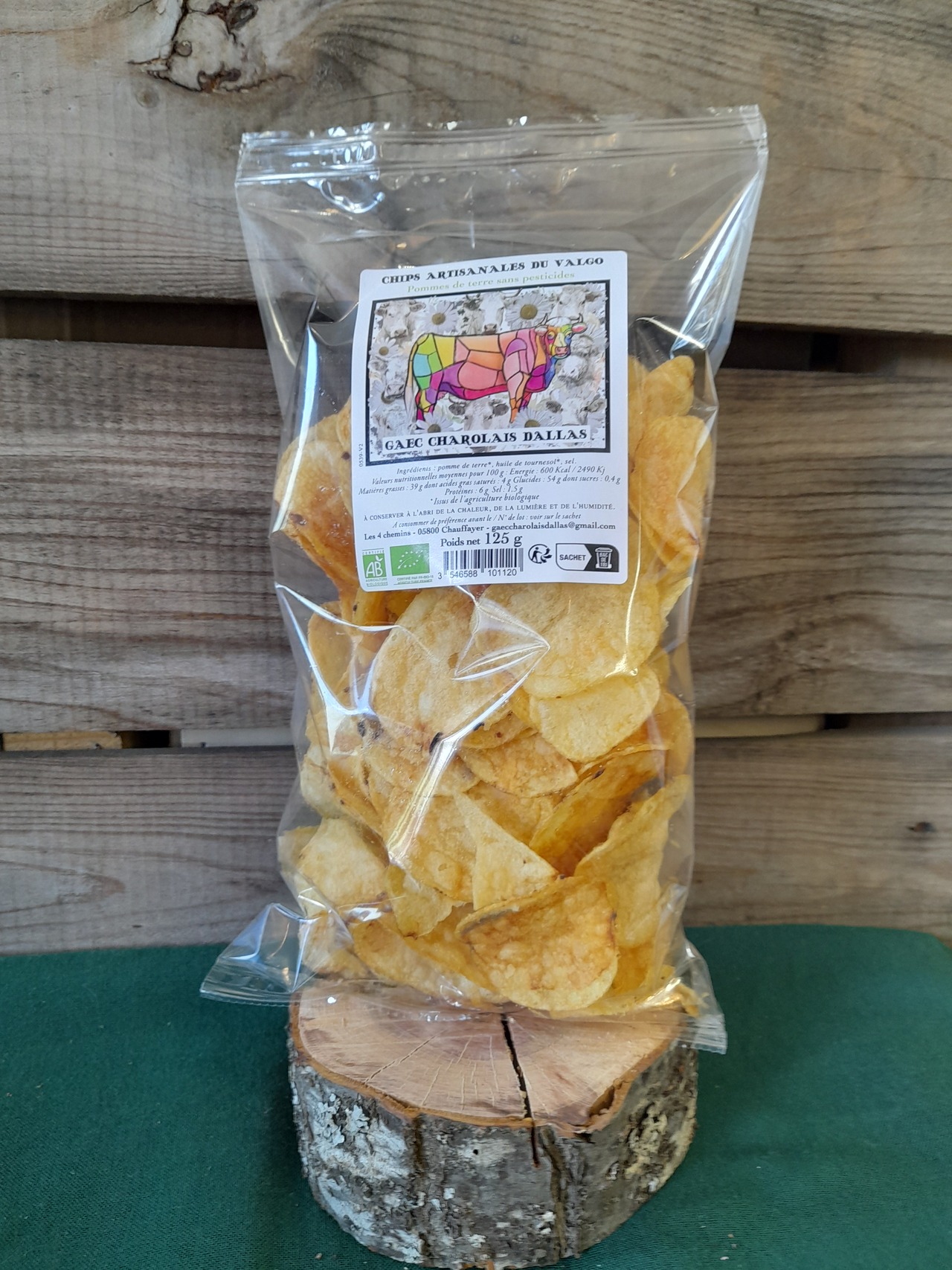 Disponibles en nature ou au piment d’espelette (et peut-être ondulées, poivrées ou aux herbes de Provence 🌿), elles sont conditionnées en sachets de 125 g avec une DDM de 6 mois, parfait pour anticiper vos apéros.