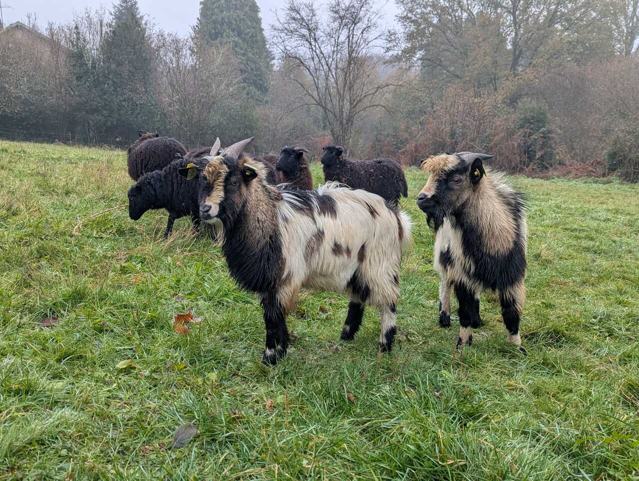 ✔️ Écopâturage : 2 boucs et 6 brebis et 2 vaches pour entretenir nos prairies naturellement