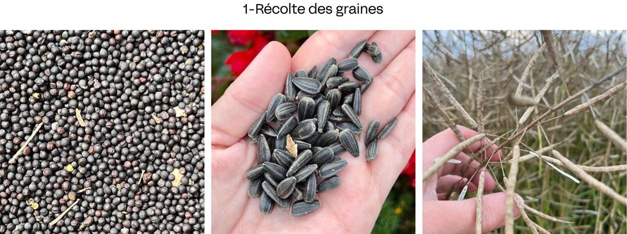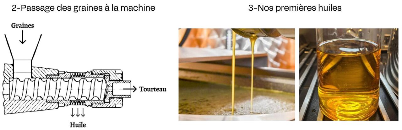 Le résidu de la graine écrasée (les tourteaux) sera consommé par les animaux de nos éleveurs voisins. Notre production vise le zéro déchet (les fonds de cuve destiné à la fabrication de savons corporels ou ménagers)