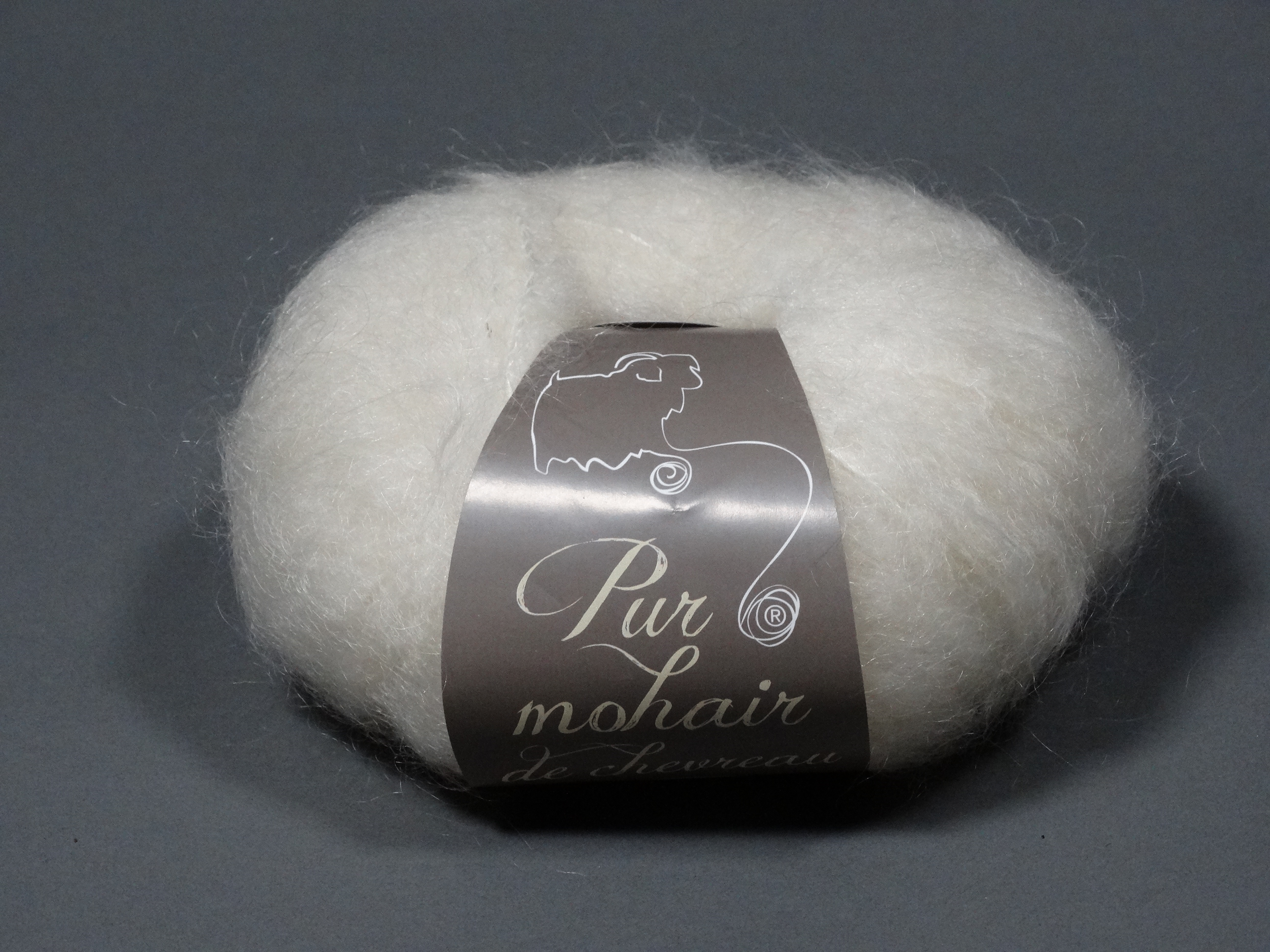 Pelote de pur laine mohair couleur naturelle écrue aiguilles 4-5 50g - 100 m