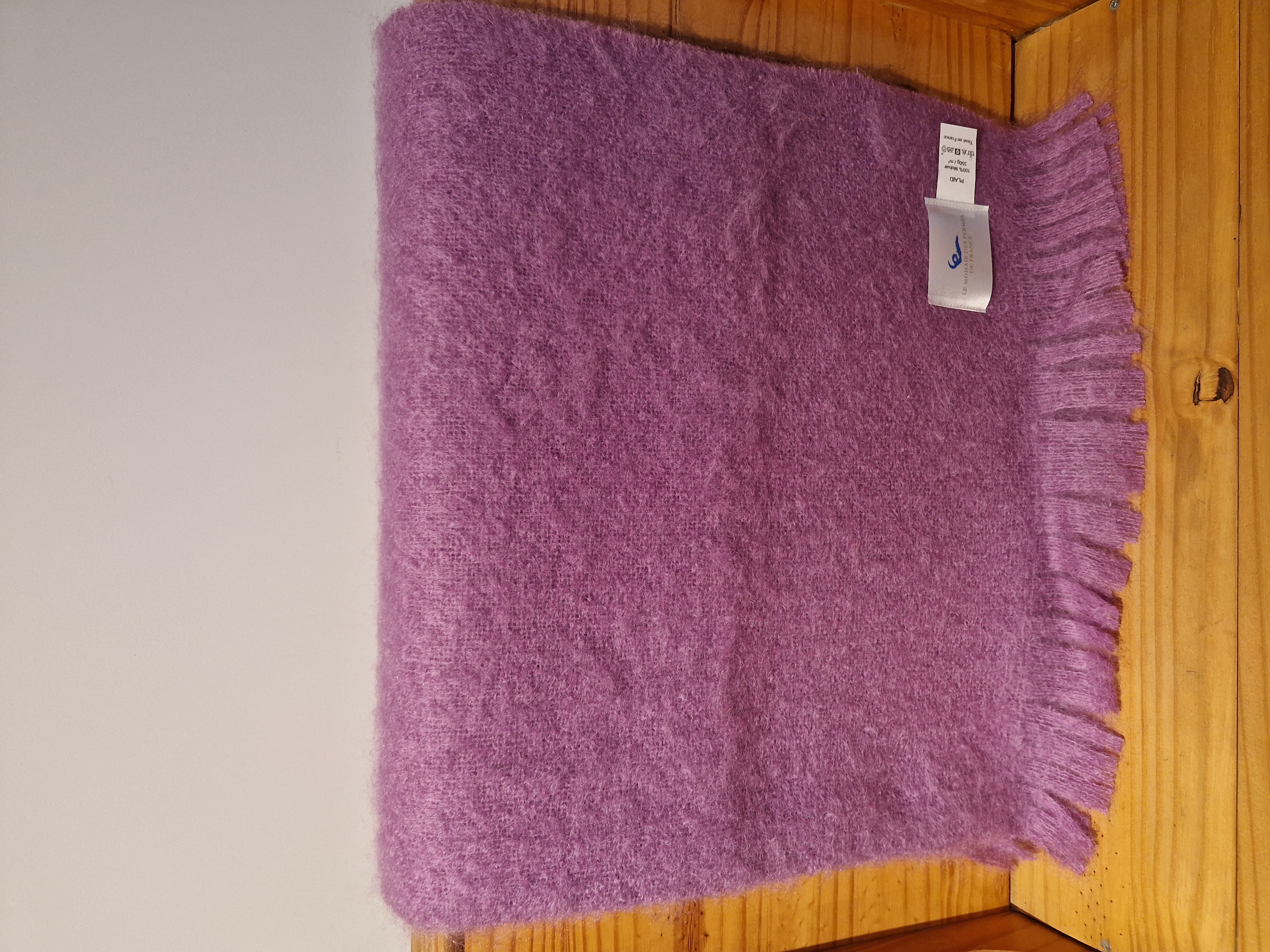 Plaid tissé 100 % mohair - couleur mauve 1m x1,30m