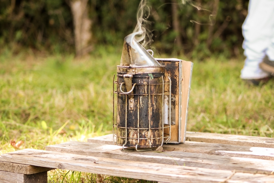 Aujourd’hui, l’extraction se fait comme le faisaient mes grands-parents : les cadres sont désoperculés au couteau puis ils sont passés dans un extracteur pour en faire sortir le miel.