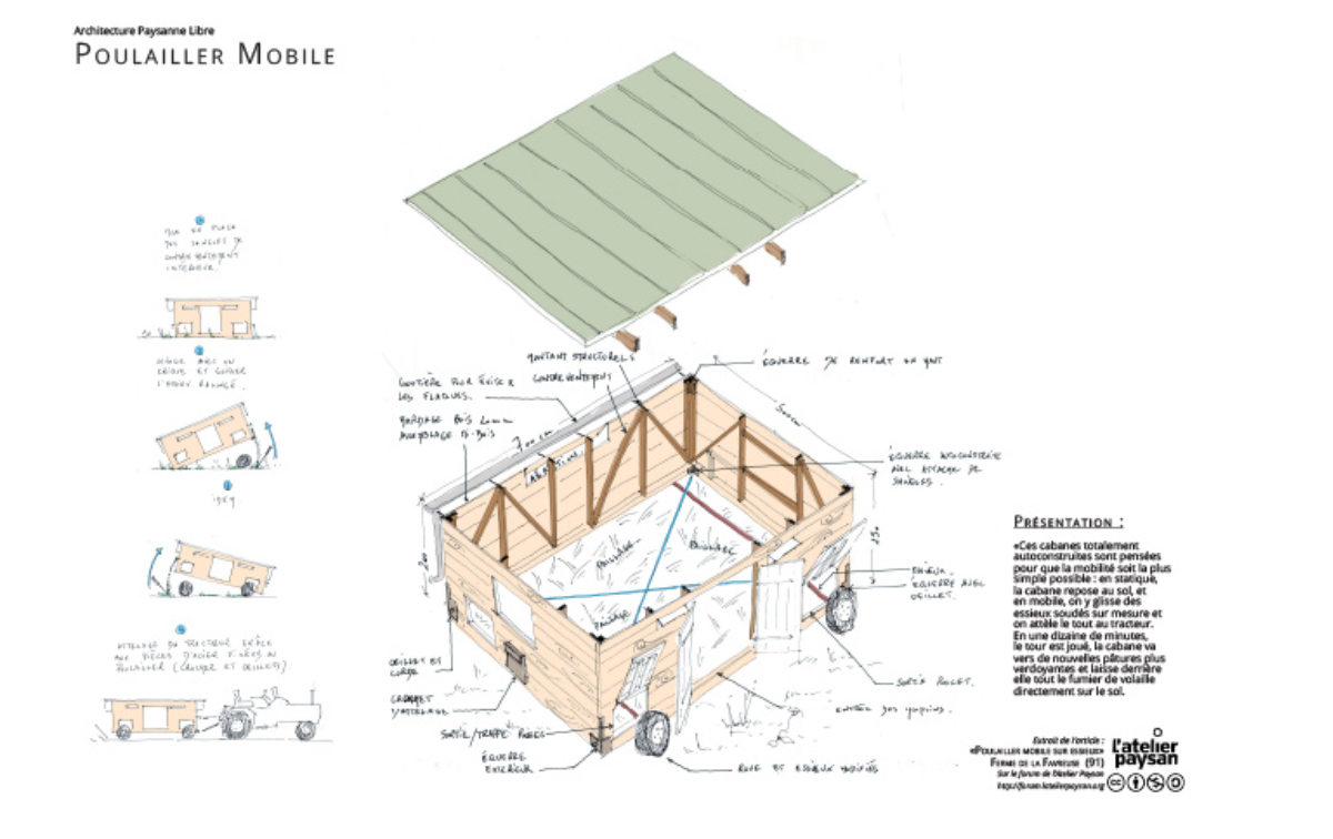 Je souhaite créer un atelier poule pondeuse sur le poulailler mobile, élevage en plein air avec rotation sur la prairie. Ce qui permet aux poules d'avoir toujours de l'herbe, des insectes et des vers de terre à volonté afin de leur apporter une bonne santé (repas diversifiés, moins de parasitisme, moins de compaction du sol) et d'avoir de bons œufs !