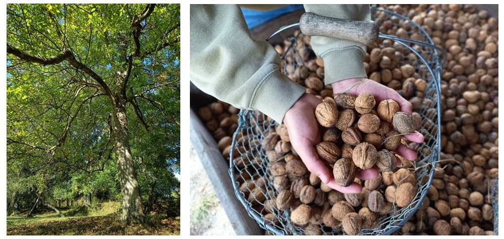 Pour préparer l'avenir, nous prévoyons de planter 1ha supplémentaire de noyers sur notre ferme de Cambremer. Comme nos vergers de pommiers, cette plantation sera conduite en haute-tige, sans pesticides et pâturée par les vaches.