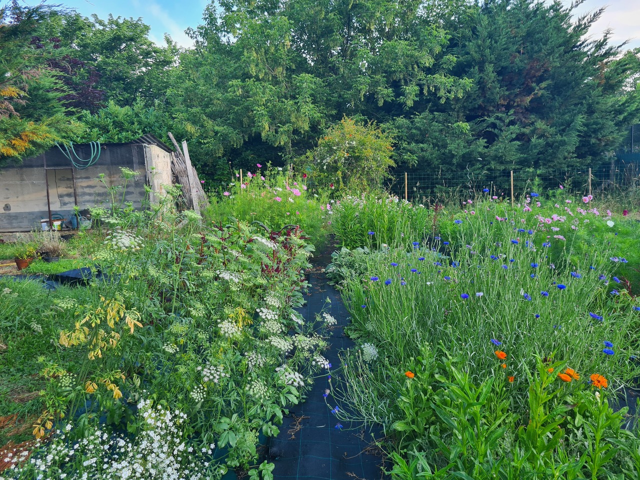 On projette à moyen-long termes la plantation d'arbres et de plantes aromatiques et médicinales, la construction d'une cabane de stockage/séchage de fleurs, et d'une deuxième serre-tunnel, l'agrandissement des jardins, l'accueil d'ateliers... soit mille projets pour les années à venir.