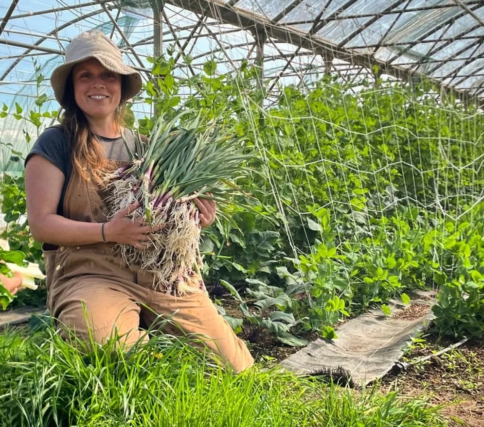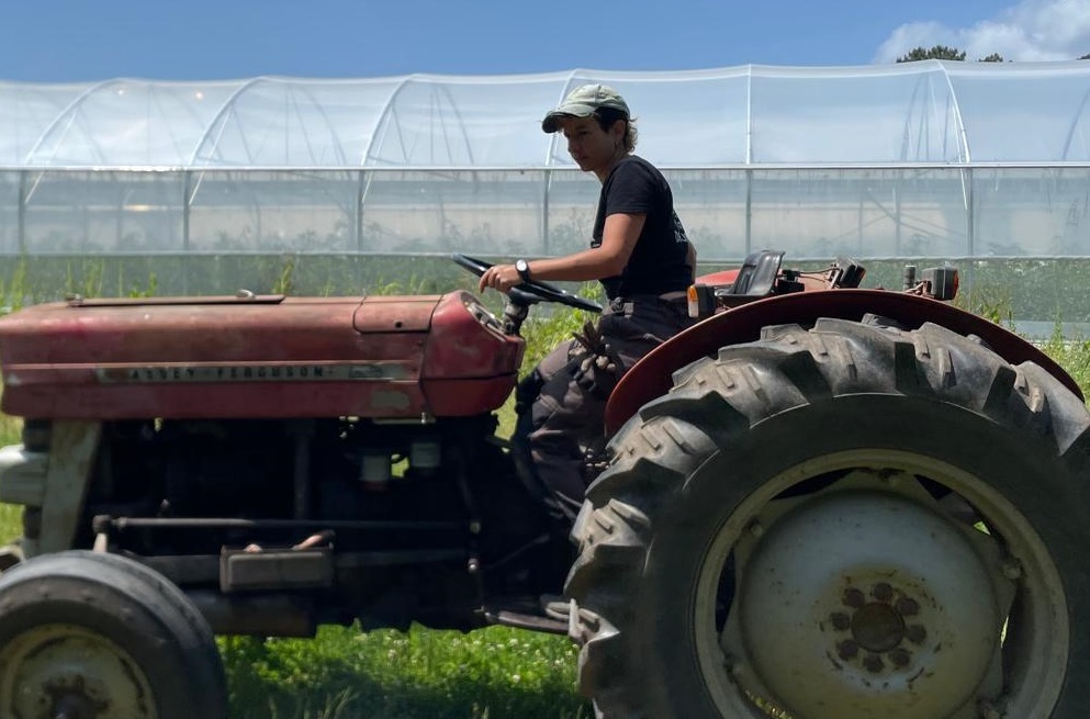 Leo est la plus ancienne sur la ferme. Issue d'une formation d'ingénieure en agronomie, elle a travaillé dans le développement et la politique agricole pendant 4 ans, puis fait des saisons avant de reprendre la ferme en 2020.