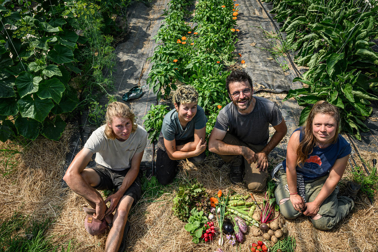 Nous sommes une équipe de paysan.ne.s trentenaires, passionné.e.s de maraîchage et d’écologie. Notre production est certifiée en Agriculture Biologique. Nous avons à cœur de favoriser la biodiversité via un enherbement naturel sans aucun produit de synthèse.