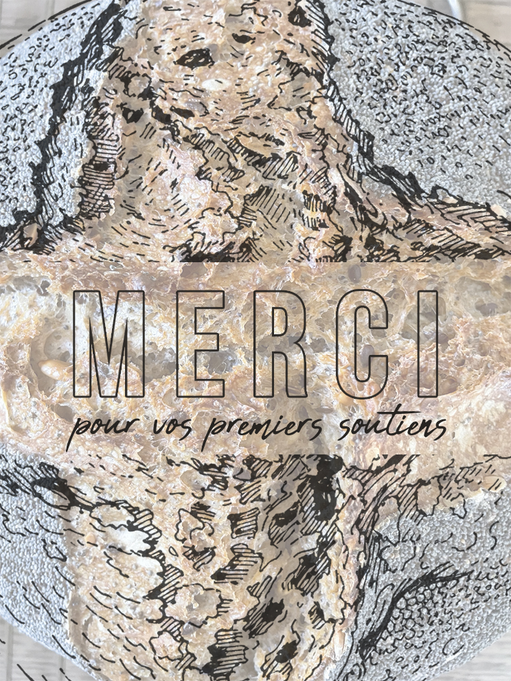 Venez chercher deux pains pour découvrir le cœur du travail artisanal au levain. • 1 pain spécial au choix • 1 pain de campagne au levain naturel Ainsi que votre nom inscrit sur le panneau des soutiens.