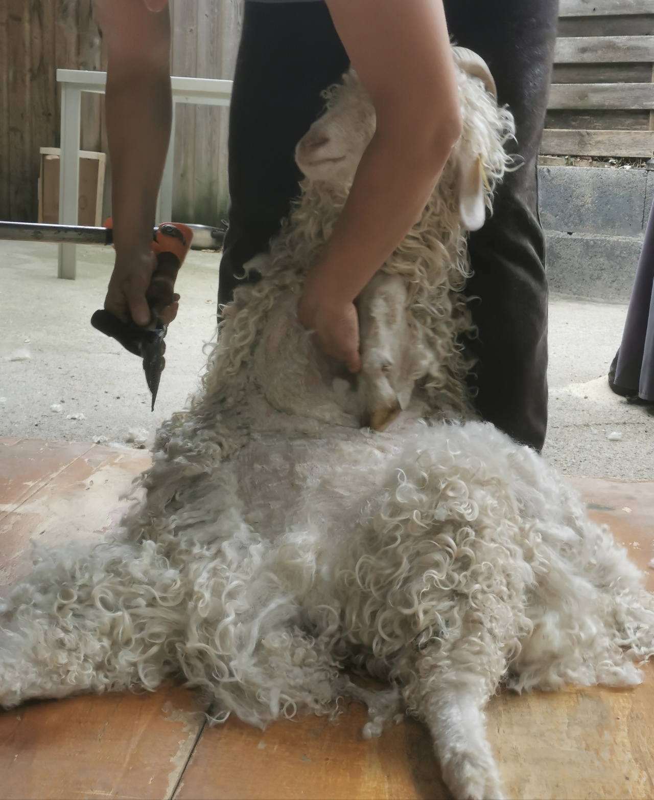 Dès l'âge de 6 mois, le Chevreau, cette boule de poils est déjà producteurs. Il connaît sa première tonte, tout en délicatesse. Ce sera ensuite 2 fois par an. Chaque toison est ensuite triée et nettoyée.