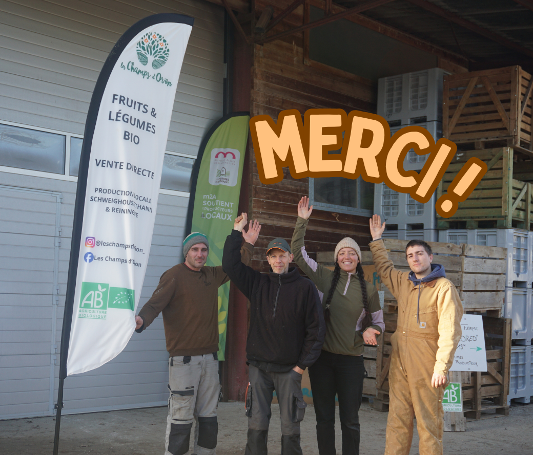 Bonjour à tous, pour ceux qui ne nous connaissent pas, nous sommes Les Champs d'Orion, ferme maraîchère bio, créée en 2021 à Reiningue et Schweighouse (Haut-Rhin, Alsace) par Benoît et Hervé.