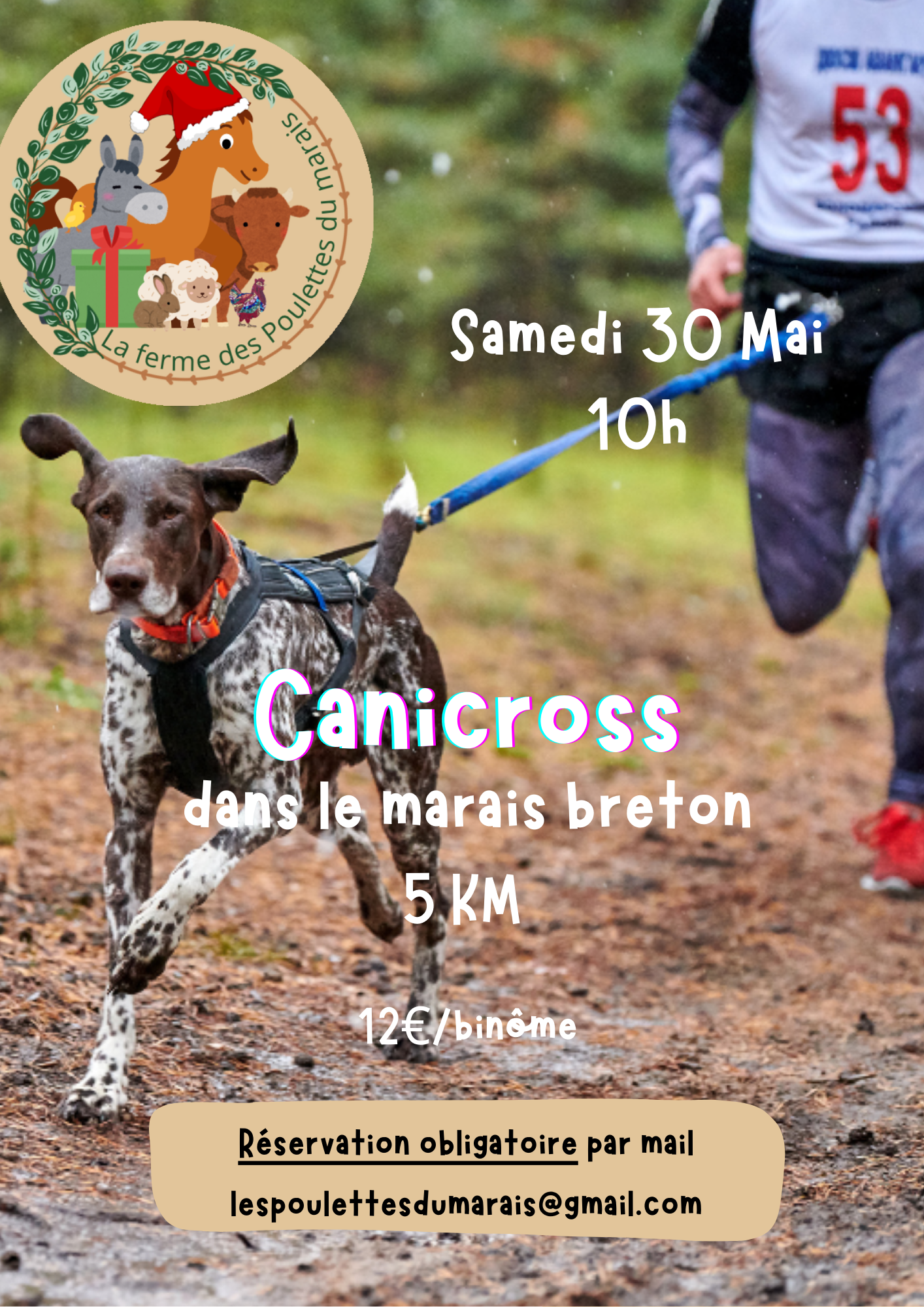 Prévente pour le prochain canicross organisé à la ferme le Samedi 30 mai 2026.