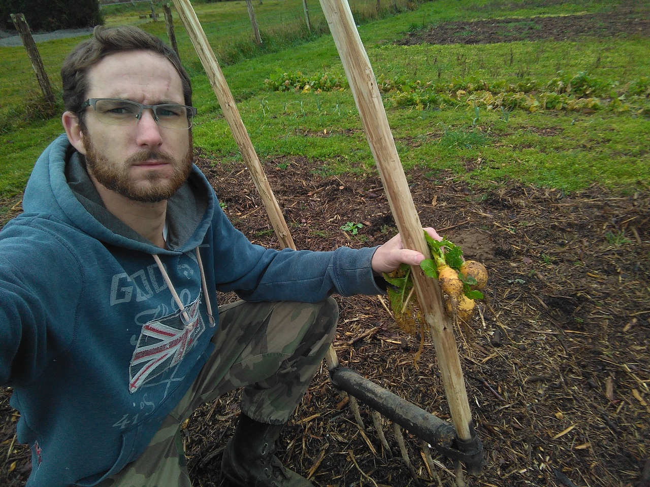 A gauche : la grelinette, outil indispensable à la permaculture. A droite : voici l'emplacement de mon futur potager permacole.