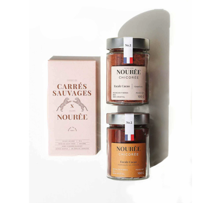 Nos 3 best-sellers avec notre tablette de chocolat à la chicorée. Découvrez nos 3 boissons phares à la chicorée et complétez votre moment dégustation avec notre tablette de chocolat cru à la chicorée, fruit de notre dernière collaboration avec Carrés Sauvages. L’Originale vous propose de découvrir le goût unique de la chicorée. Elle surprend par sa douceur, ses reflets brun-doré et ses notes caramélisées. Sans excitant et riche en fibres, c’est l’alternative saine et locale au café. Escale Cacao est l’alliance idéale entre la chicorée bio, riche en fibres, fabriquée en France et une délicieuse poudre de cacao bio équitable. Escale Cacao propose un voyage intense aux effluves cacaotées et aux notes caramélisées. Escale Cacao Grand Cru est la version revisitée d’Escale Cacao avec un cacao cru, puissant et fruité. Mélangé à une chicorée récoltée dans le nord de la France, douce alternative au café sans excitant et riche en fibre. Le cacao cru, non torréfié, concentré en magnésium, en fer et en zinc, donne de l’éclat à la peau et aux cheveux, tandis que la chicorée constitue une source de fibres indispensables pour la vitalité de notre microbiote. Escale Sauvage est une tablette de chocolat cru à la texture délicate, aux notes caramélisées, dans laquelle se glisse avec gourmandise du quinoa soufflé qui croustille en bouche. Cette tablette fabriquée artisanalement en France depuis la fève, offre ce que la nature propose de plus sauvage et bénéfique pour le corps et l’esprit : 🤎 le cacao cru, non torréfié, concentré en magnésium, en fer et en zinc, donne de l’éclat à la peau et aux cheveux 🤎 la chicorée constitue une source de fibres indispensables pour la vitalité de notre microbiote 🤎 La maca et le lucuma apportent un boost d’énergie et d’antioxydants. 🤎 Enfin, une purée d’amandes blanches, ronde et riche en bons gras, enrobe le tout de douceur.