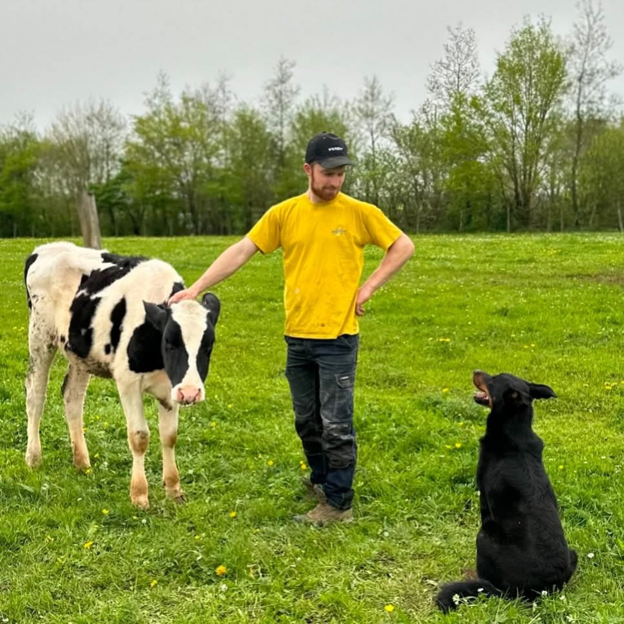 Installé en Basse Normandie, dans une commune voisine de mon enfance, située tout juste entre la plaine et le bocage, je suis passionné par la gestion du pâturage et l'amour des animaux. C'est ce qui m'a conduit à reprendre une exploitation avec des convictions fortes et un cahier des charges exigeant : non seulement celui de l'agriculture BIO, mais aussi celui d'être producteur pour la marque LES 2 VACHES. C'est une véritable fierté, car c'était tout ce dont je rêvais : produire un lait de qualité, sain pour l'environnement et engagé dans un mouvement positif pour notre planète.