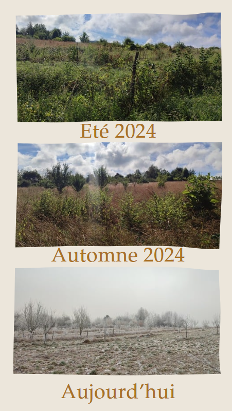 En mai 2024, ma persévérance a finalement été récompensée. J’ai fait une rencontre décisive : une femme extraordinaire qui m’a proposé une parcelle idéale, située à quelques minutes de chez moi. Dès cet instant, tout s’est accéléré. J’ai pu commencer à travailler sur ce terrain et entamer le défrichage.