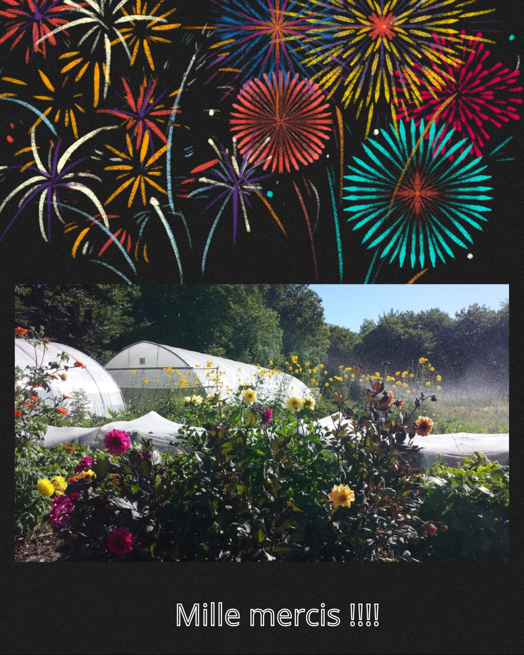 Un merci infini, une visite de la ferme avec dégustation des produits et vous repartez avec 3 produits de votre choix (hors grands pots). Et si vous ne pouvez pas venir, on vous envoie une vidéo et vos produits en livraison.