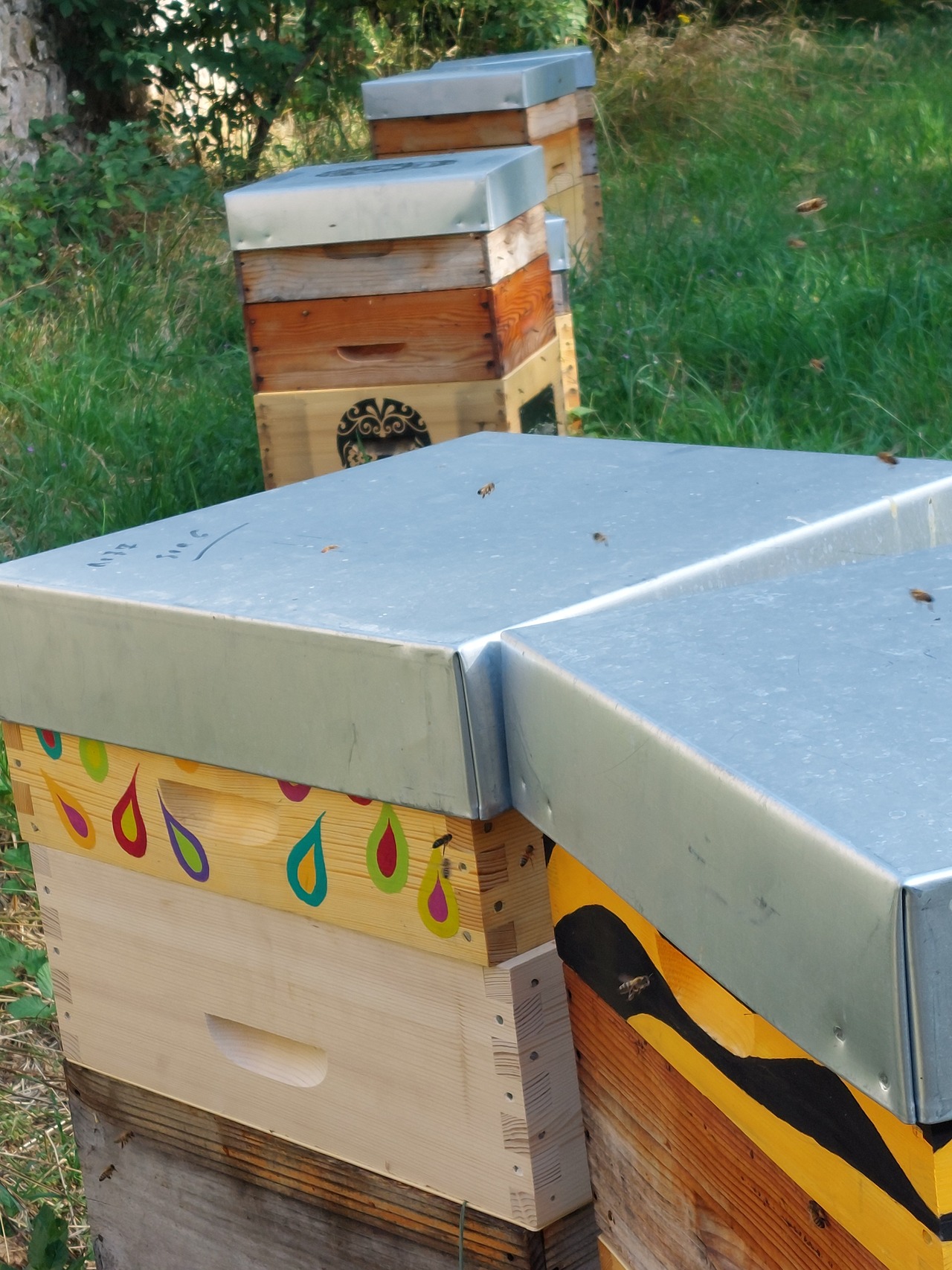 Accompagnée de mon mari Antony, artiste, vétérinaire et toxicologue, nous vous proposons une apiculture un peu différente : nos ruches sont toutes sédentaires, disposées dans plusieurs ruchers des Monts du Lyonnais en zone de production de fruits, d'élevage extensif et de forêts. J'apporte une attention toute particulière à la santé de mes abeilles en semant des fleurs adaptées à leurs besoins. Scientifique avant tout, chaque lot est analysé au laboratoire (Naturalim France Miel) afin de valider son origine florale et de décrire les pollens présents dans la récolte des abeilles. La lutte contre les pathologies des abeilles est également ma priorité, et je suis très impliquée au niveau associatif (co-présidente de la section apicole du GDS).
