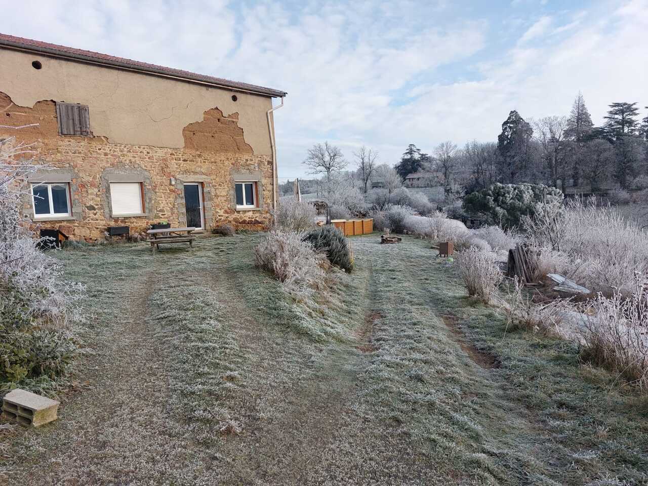 - une mise en beauté de notre bâtiment en pisé, tout en respectant ce bâti traditionnel des Monts du lyonnais (terre, paille...). Pour cela nous avons fait appel à une architecte spécialisée et à des artisans respectueux du site.