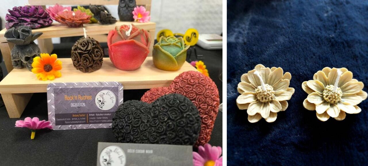 Antony utilise lui ses talents pour fabriquer les ruches et travailler la cire des abeilles. Il a donc créé RockN'Ruches, et réalise sur commande des bougies ou objets en pure cire d'abeilles, colorées grâce à des pigments naturels. Il travaille avec des groupes de Rock de ses goûts afin d'apporter une touche de Peps sur nos ruches et les faire connaître au plus grand nombre ! (Site internet RockNRuches)