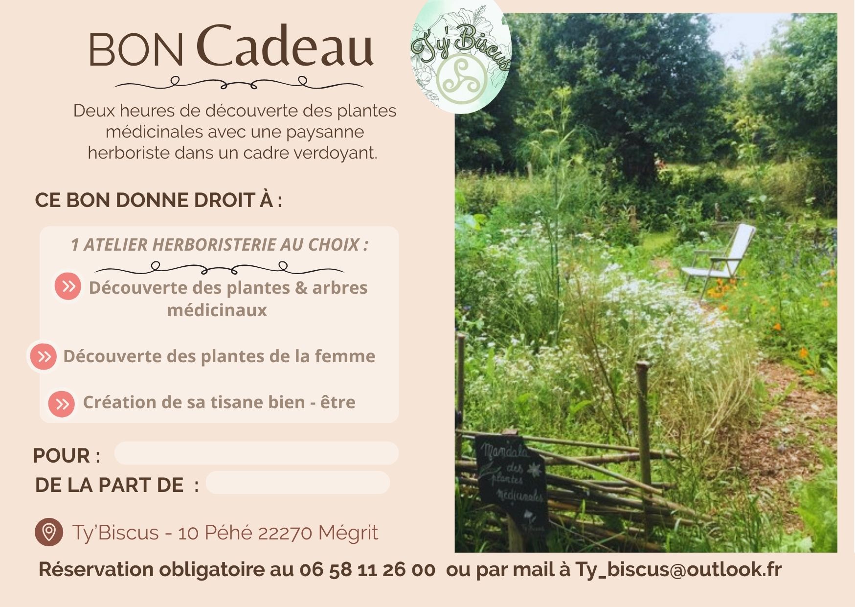 Venez découvrir les secrets des plantes médicinales dans mon jardin. Vous pouvez choisir entre tous ses ateliers découverte de 2 h (ci-dessous). Vous repartirez avec votre petit livret explicatif, et une tisane chaude vous sera offerte sur place. - Atelier découverte des plantes médicinales - Atelier création de tisane - Atelier plantes de la femme - Cercle de femmes + votre nom gravé sur un panneau de bois.