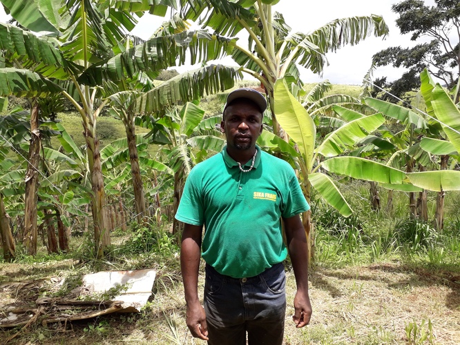 Les chemins d'accès aux bâtiments ont déjà été réalisés, ainsi que la plantation de bananes plantains. Les premiers fruits sont déjà récoltés. Le bâtiment d'engraissement des coqs en semi-liberté existe déjà, cependant des aménagements sont nécessaires afin d'améliorer les conditions d'élevage.