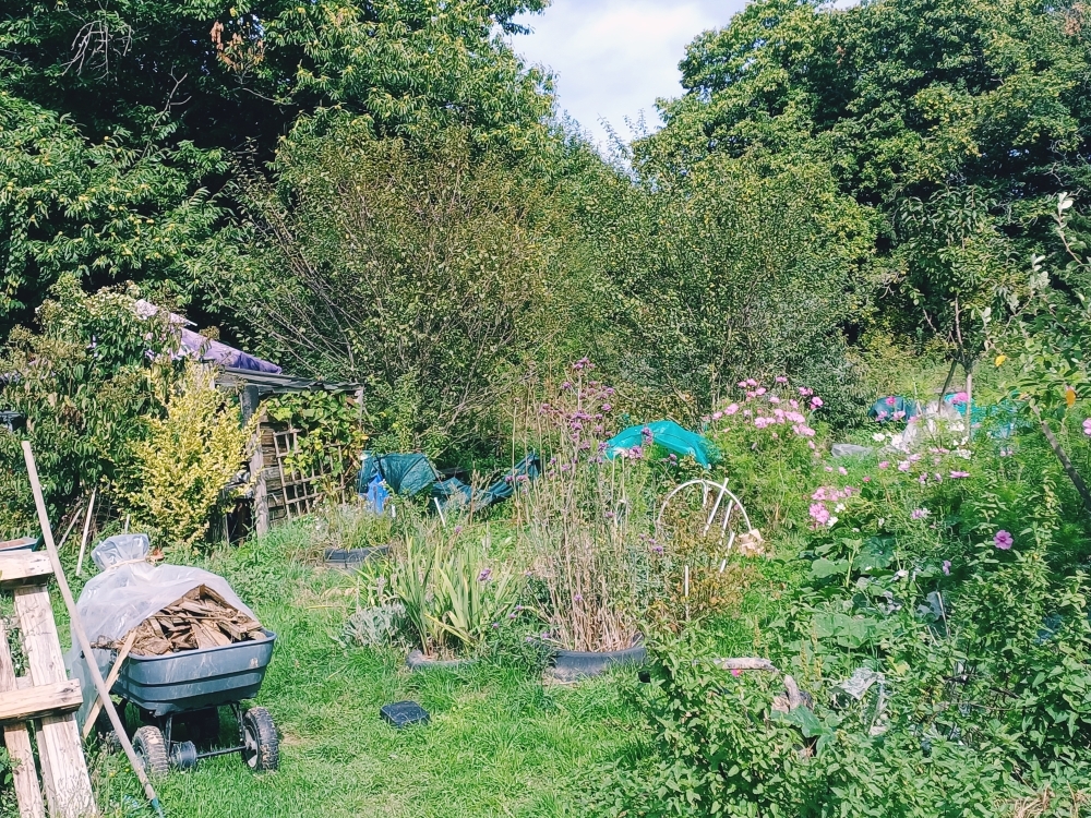 Arrivée avec mon camping-car, juste avant le 1er confinement ! Bloquée sur mon terrain ! Cela restera ma maison jusqu'à aujourd'hui encore pour des raisons économiques ! Je peux juste commencer à mettre en place des plates bandes !