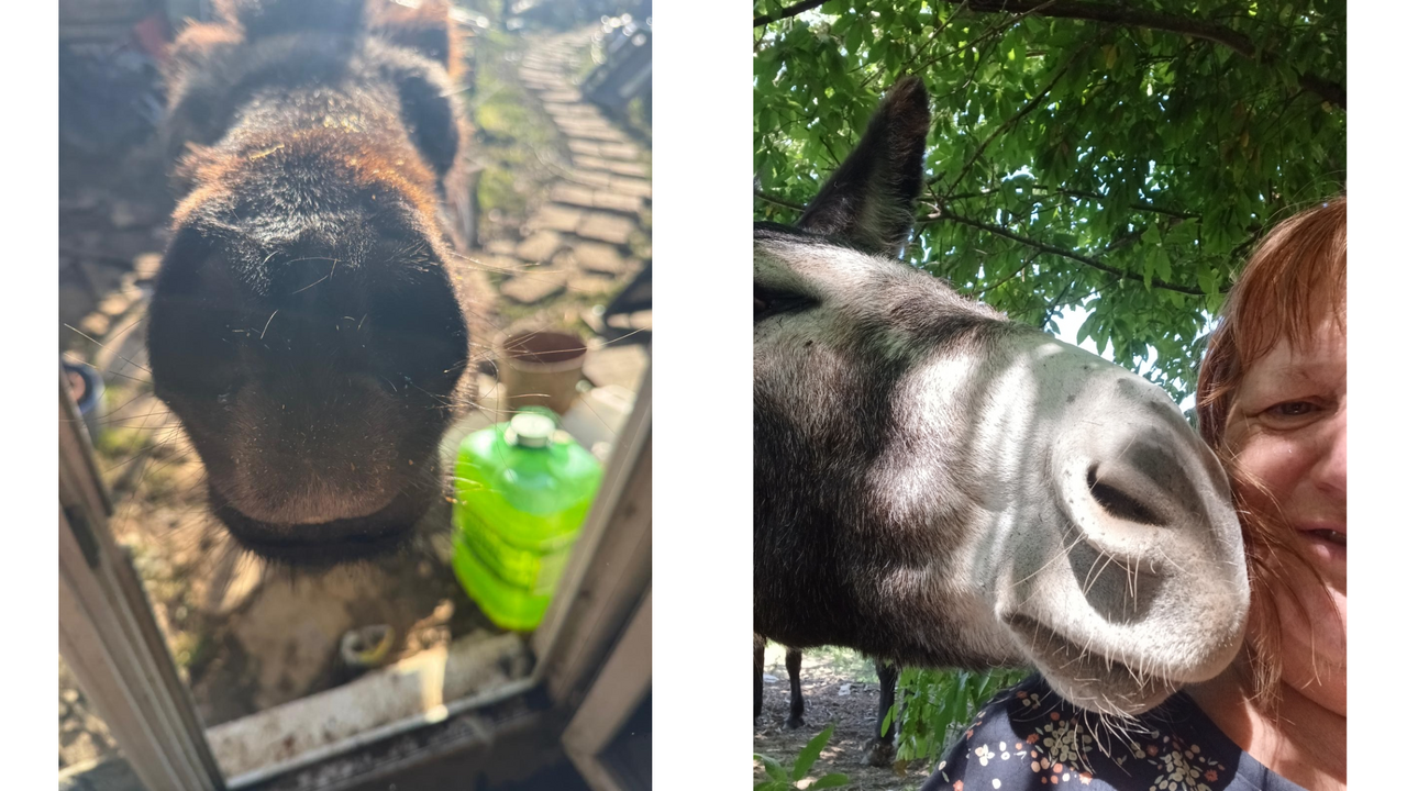 Sauvés de l’abandon, ces animaux jouent un rôle essentiel dans le projet. C'est à dire, l'entretien doux des pâtures, production de fumier naturel pour les cultures et présence affective et pédagogique auprès des enfants du voisinage.