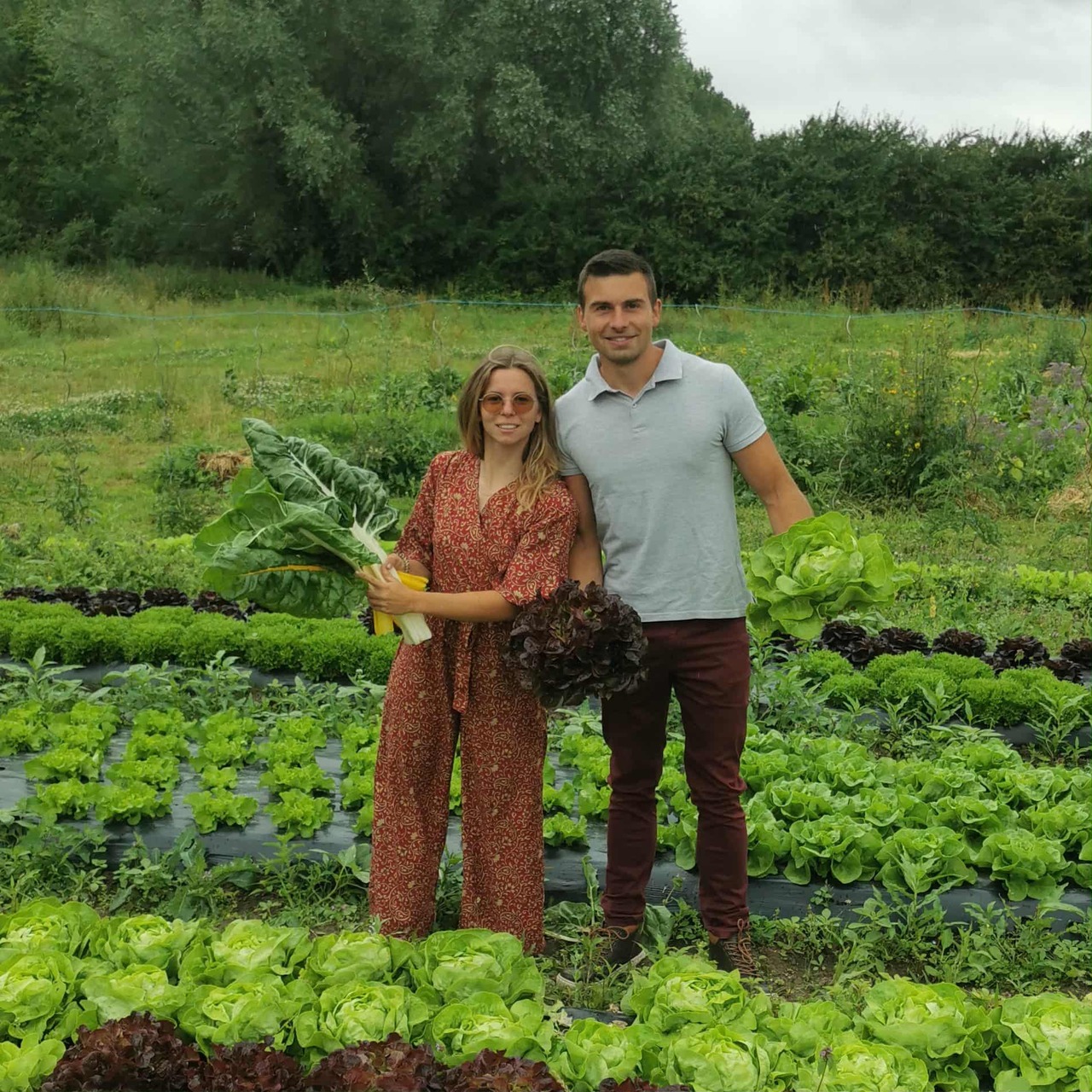Nous sommes Zélie et Teddy, un couple de jeunes maraîchers installés sous le nom de La Ferme Zelted, à La Motte-au-Bois (Nord).